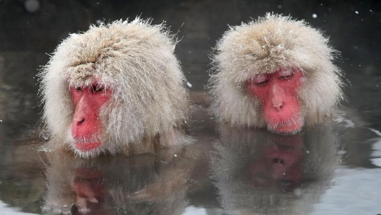 Macacii japonezi de la parcul de maimuţe Jigokudani din prefectura Nagano a Japoniei îşi încep majoritatea zilelor cu o intrare în „jacuzzi-ul” lor privat. Maimuţele de zăpadă folosesc băile nu doar pentru a se încălzi ci şi în scop de destresare, potrivit CNN.