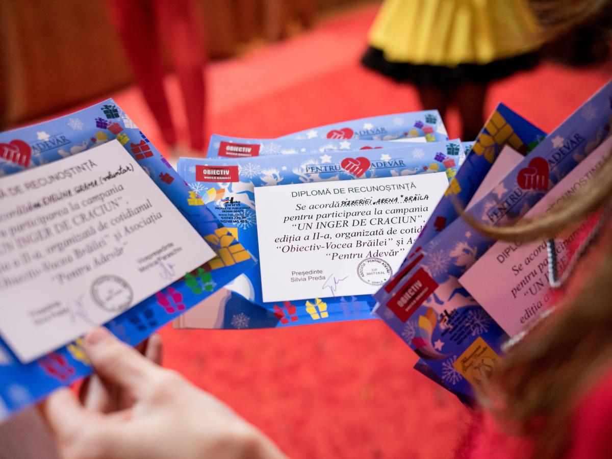 • ediţia a II-a a campaniei organizate în prag de Crăciun de ziarul “Obiectiv-Vocea Brăilei” şi Asociaţia “Pentru Adevăr” a adus mari bucurii în sufletele şi casele multor copii • aproape 200 de “Îngeri” s-au alăturat campaniei, iar numărul lor ar fi fost cu siguranţă mai mare dacă şi numărul scrisorilor pe care le-am avut în redacţie era mai mare • copiii au primit de la Moş Crăciun ceea ce au cerut în scrisoare, iar mesajele de mulţumire ne-au copleşit • serbarea de la Palatul “Lyra”, din data de 19 decembrie, a fost cu adevărat magică