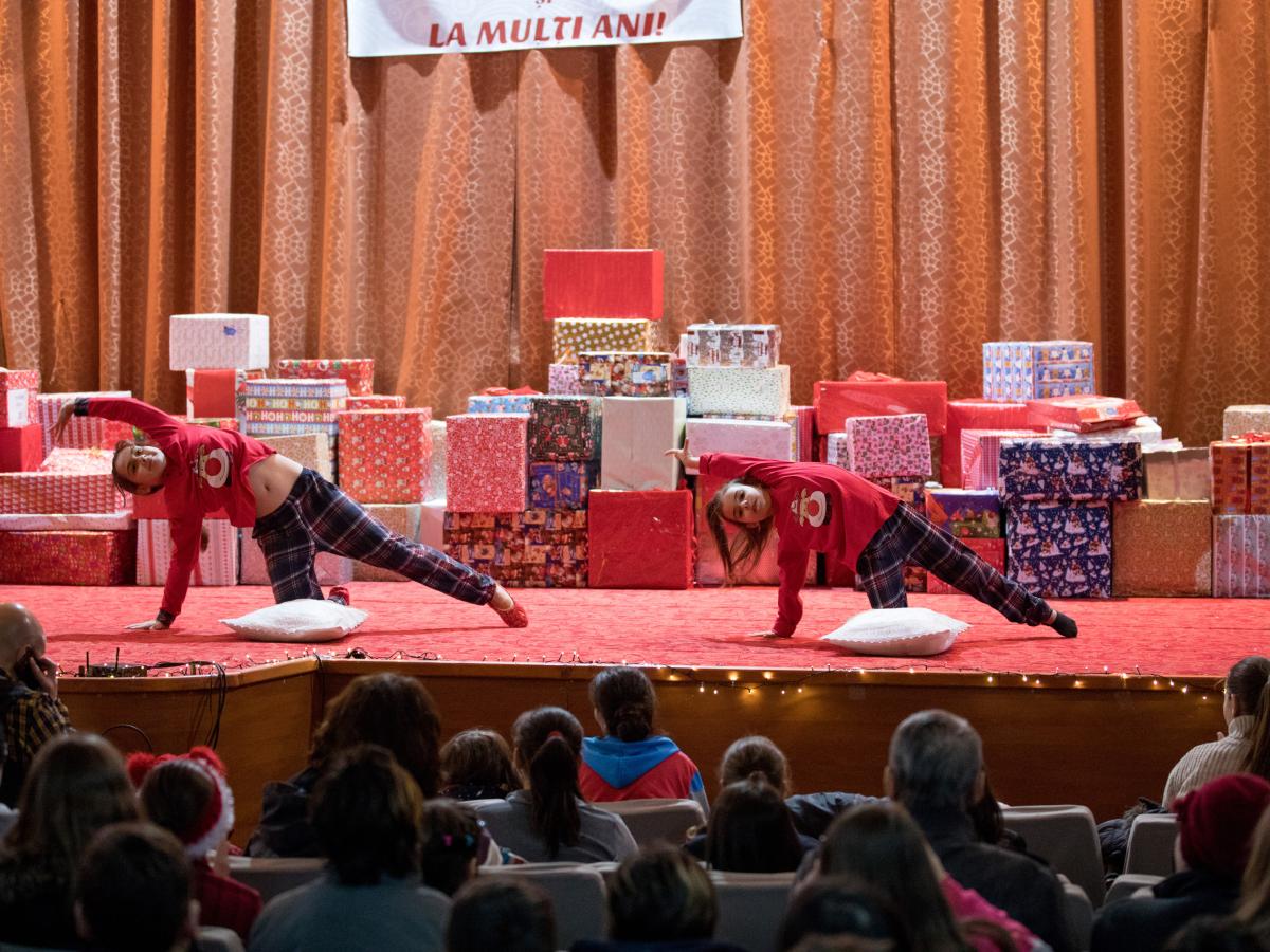 Pentru că drumul de la Polul Nord până la Brăila e lung, iar zăpada a lipsit, până la sosirea lui Moş Crăciun, copiii prezenţi în sală s-au bucurat de un program de colinde susţinut de elevii Liceului de Arte “Hariclea Darclee”, urmat de o frumoasă poveste de Crăciun transpusă în dans de micile dansatoare de contemporan de la “Lil Motion Dance School”, coordonaţi de coregraful Liliana Stan.
