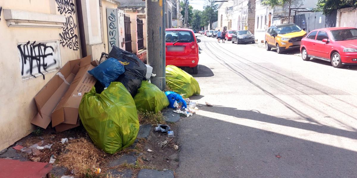 • intersecția cu strada Mihai Eminescu, fosta Regală, a fost transformată într-o adevărată groapă de gunoi, de cei care, cel mai probabil, refuză să plătească taxa de salubritate și să își scoată, civilizat, o dată pe săptămână, deșeurile menajere în fața porții • Poliția Locală, instituția care ar trebui să stopeze fenomenul prin identificarea și sancționarea celor care se fac vinovați, nu-și face prezența în zonă decât atunci când primește ”sarcini de serviciu”