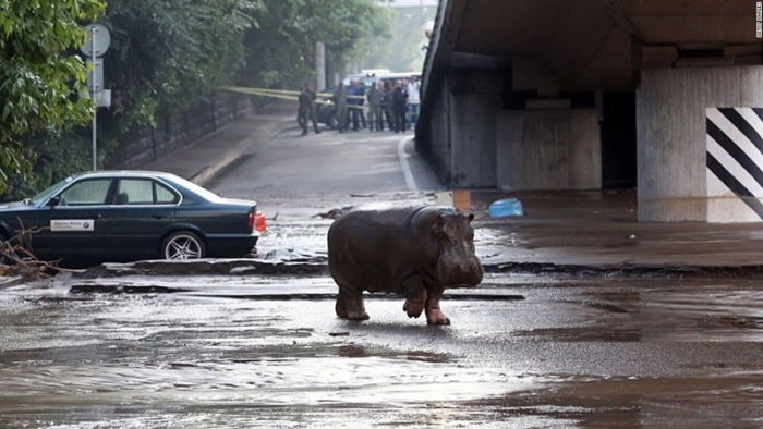 Un hipopotam a fost încercuit într-una dintre principalele pieţe ale oraşului şi tranchilizat, au afirmat reprezentanţii grădinii zoologice. Au fost capturate şi alte animale, dar nu se ştie clar câte mai sunt în libertate. Poliţia a ucis câteva dintre ele din motive de siguranţă.