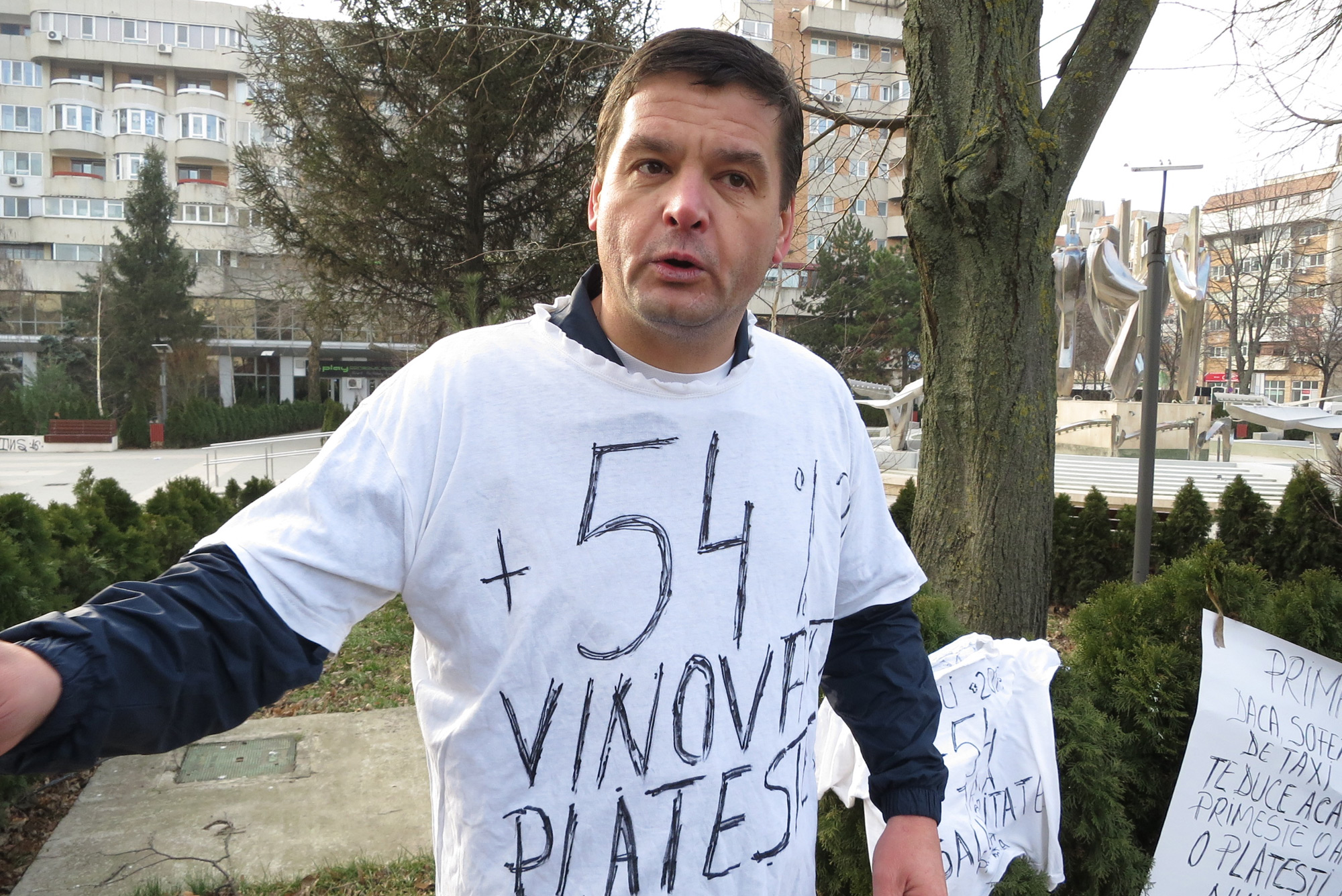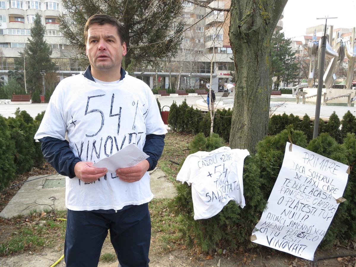 “Este a treia zi când protestez. Bineînţeles că am autorizaţie de la Primărie, mi-a fost aprobată. Am ales să protestez pentru că nu cred că e corect ca taxa de salubritate să se mărească şi nu oricum, ci chiar cu 54%. Şi asta doar pentru că unii nu şi-au făcut treaba. Şi aici mă refer la primar, la consilierii locali municipali, care au şi votat această lege, pe ascuns. În perioada sărbătorilor, când toată lumea taie porcul, se lasă cu dans, cu pluguşor, colinde, ei dau - să zicem aşa -, o amendă populaţiei, pentru că la rândul lor nu au reciclat gunoiul în municipiu. Marea problemă este legată tocmai de acest lucru. Dânşii nu au reciclat şi noi plătim!”, a declarat Costel Mărgărit, vizibil deranjat de situaţie.