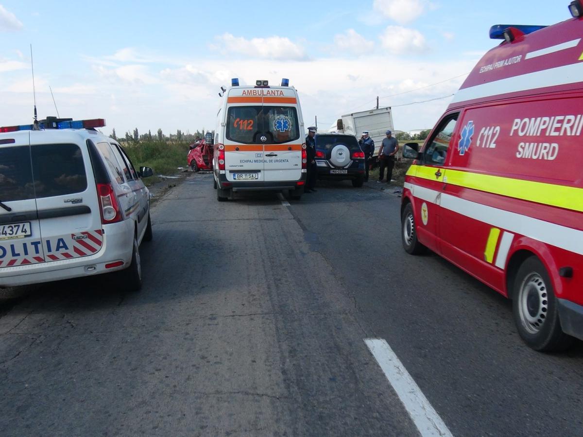 UPDATE 16.00. Tragicul accident s-a produs în jurul prânzului, pe DN 23 Brăila – Focşani, la 2 km de intersecţia cu Şoseaua de centură a municipiului Brăila.