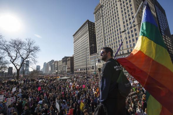Și la Chicago au venit atât de mulți oameni, încât traseul prevăzut inițial pentru marș s-a dovedit neîncăpător.