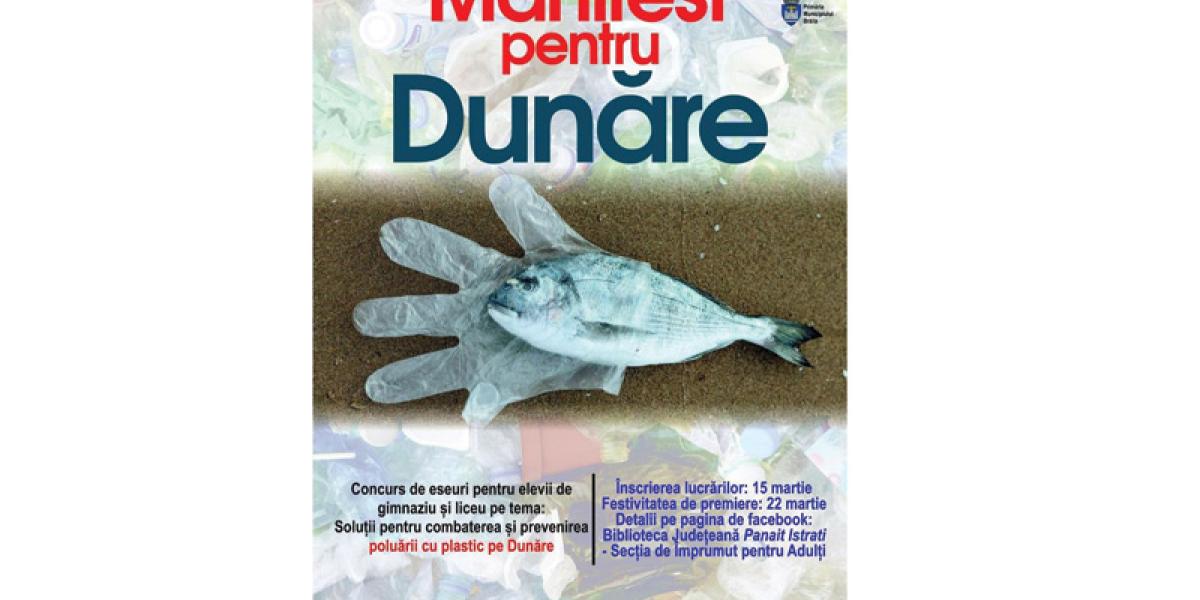 În luna martie se desfășoară "Săptămâna Apelor", marcată de două evenimente importante: 14 martie – Ziua Internațională a Râurilor și 22 martie – Ziua Mondială a Apei. Cu acest prilej, în cadrul programului "Cu apele curate" inițiat de Asociația "Mai mult verde", în parteneriat cu Lidl România, Biblioteca Județeană "Panait Istrati" Brăila - Secția Împrumut pentru Adulți, împreună cu Grupul de inițiativă locală "Creionăm viitorul", organizează Concursul "Manifest pentru Dunăre". Competiția se adresează elevilor de gimnaziu și liceu și constă în realizarea unei lucrări/eseu prin care elevii își vor exprima viziunea referitoare la protejarea apelor și la o calitate a vieții mai bună în viitor. Tema propusă este ”Soluții pentru combaterea și prevenirea poluării cu plastic a Dunării”, iar elevii pot crea mesaje motivaționale pentru comunitate în vederea atragerii atenției asupra fenomenului de poluare a apelor.