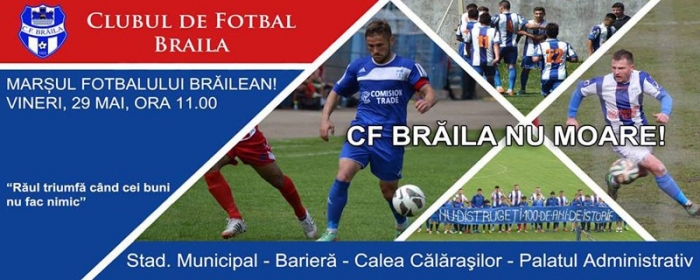 Vineri la ora 11.00, susţinătorii fotbalului brăilean sunt aşteptaţi la Stadionul Municipal, iar de aici vor pleca într-un marş de protest care va avea ca punct final Palatul Administraiv.