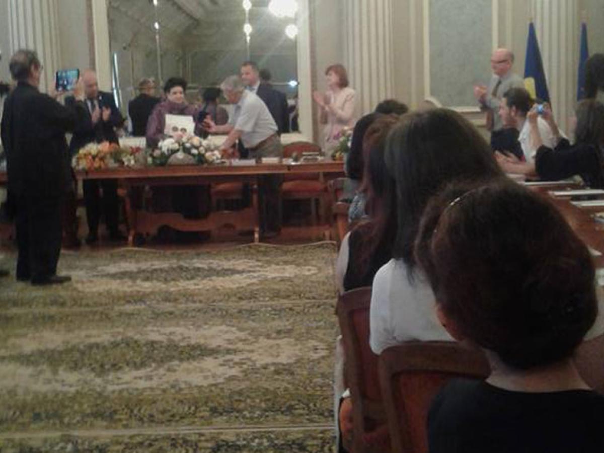 Bine aţi venit dragi artişti din ţara noastră şi din Republica Moldova, din Austria şi din Polonia, din Armenia, din Turcia şi din îndepărtata şi tot mai apropiata Chină”.