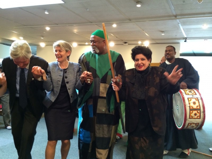 Mulţumind pentru cuvintele de încurajare ale Irinei Bokova, Mariana Nicolesco a spus între altele: "Dragi prieteni, Festivalul şi Concursul Internaţional de Canto Hariclea Darclée pe care l-am creat în 1995 spre a onora memoria legendarei soprane pentru care Puccini a compus Tosca, Mascagni Iris şi Catalani La Wally, sărbătoresc, în această vară, 20 de ani de minunate succese. Aşa cum spuneam şi la Reuniunea noastră de acum un an, credoul meu este că nimic nu-i apropie pe oameni mai mult decât cântul. Prezenţa mea în China, ca Membră a Juriului Concursului Internaţional de Canto al acestei ţări, a declanşat un fenomen care-mi întăreşte convingerile şi care a depăşit orice imaginaţie. După această vizită, toate sopranele din China vor să cânte La Traviata de Verdi, Violetta fiind un rol pe care l-am interpretat de peste două sute de ori în lumea întreagă. Sute de tinere talente au participat în China la o selecţie în urma căreia în jur de 30 de concurenţi se vor alătura colegilor de pe alte meleaguri înscrişi la această ediţie, ridicând la aproape 2.500 numărul tinerilor talente din 50 de ţări şi 5 continente veniţi la Brăila până acum. Înţeleg să onorez astfel Înaltul Patronaj UNESCO şi titlul de Artist UNESCO pentru Pace care mi-a fost conferit".