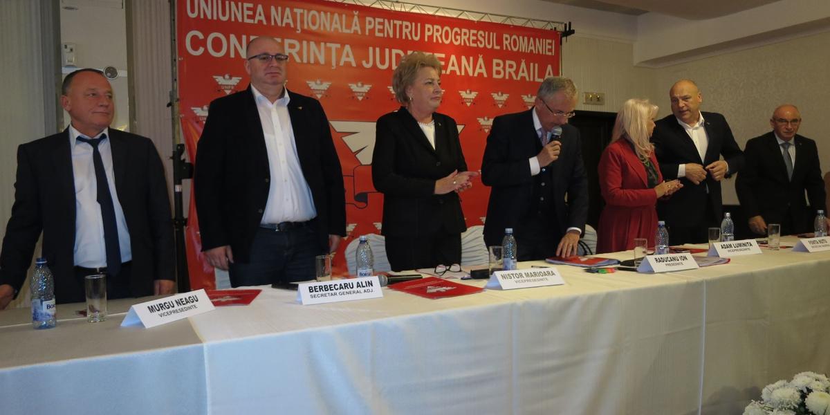 Unioniștii brăileni s-au adunat, astăzi, cu mic cu mare, la Regal Events Ballroom pentru a participa la Conferința Județeană a partidului și a-și alege noua conducere. Cu această ocazie, fostul deputat de Brăila, Marioara Nistor, a fost aleasă în unanimitate, cu 231 voturi ”pentru”, președintele organizației județene, odată cu noul Birou Politic al UNPR Brăila. La eveniment a participat Ion Răducanu, șeful UNPR la nivel național, dar și alți membrii din conducerea partidului, precum vicepreședinții Luminița Adam, Eugen Chebac sau secretarul general Nuțu Fota și nu numai. Potrivit liderului de la Centru, tot cu această ocazie a venit la Brăila și fostul ministru al Apărării, Gabriel Oprea, însă UNPR-istul a evitat complet întâlnirile cu presa și s-a limitat doar la cele cu membrii de partid.