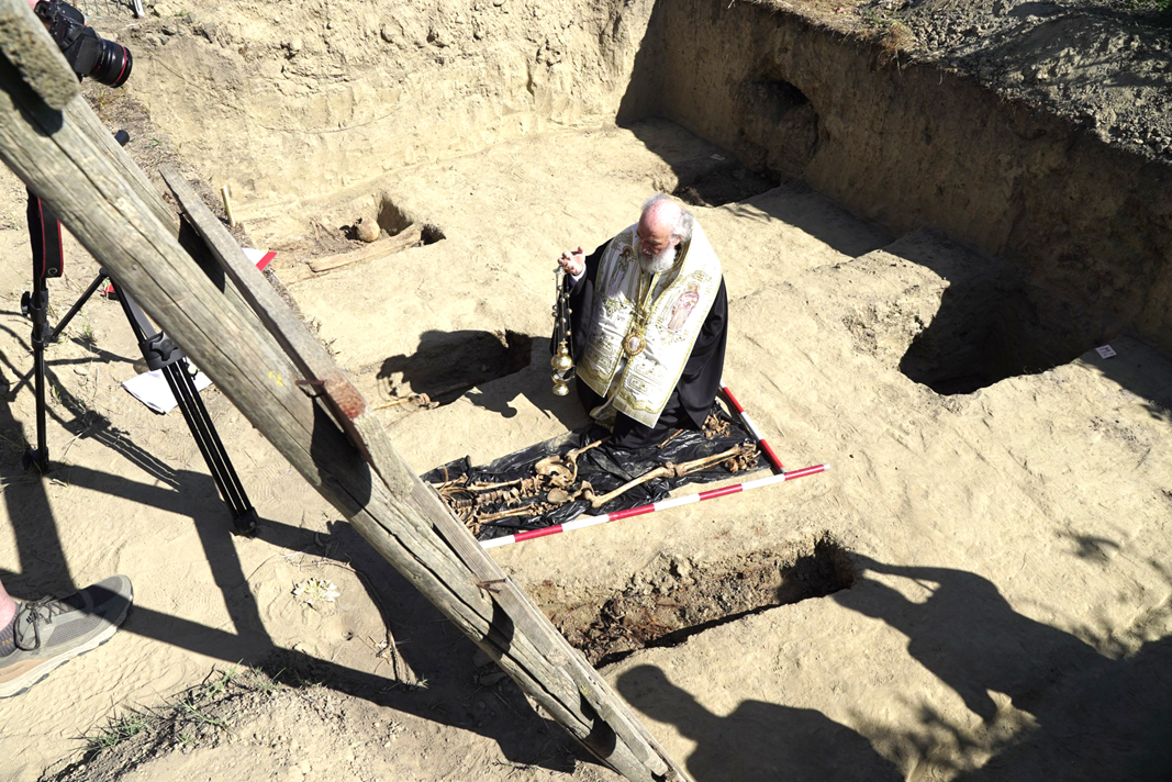 Vădit emoționat la vederea rămășițelor pământești, părintele Arhiepiscop Casian a săvârşit aici slujba Parastasului, în cadrul căreia au fost pomeniţi toţi cei care au fost închişi şi torturaţi, începând cu anul 1952, în lagărul (colonia de muncă) Salcia, din Insula Mare a Brăilei. La slujba oficiată chiar în groapa comună au asistat credincioși din Agaua, arheologii care trudesc la deshumarea foștilor deținuți politici, precum și protopopul Brăila, părintele Ștefan Constandache.