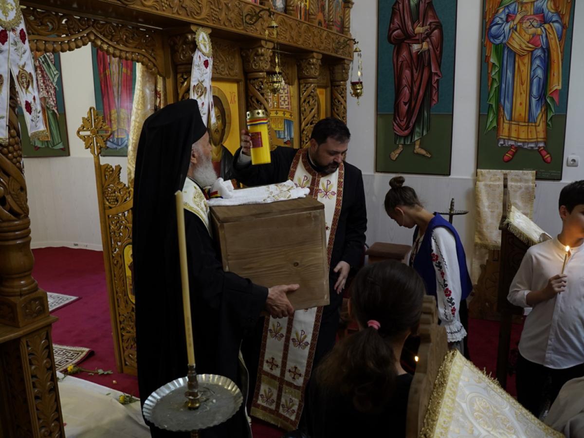 Osemintele celor opt martiri au fost așezate apoi în racle din lemn și depuse, la loc de cinste, în bisericile din vecinătate: patru au fost aşezate în biserica din satul Agaua şi patru în biserica din Frecăţei. Cu acest prilej, ierarhul Dunării de Jos a binecuvântat lucrările de amenajare efectuate la cele două biserici şi a oferit 30 de ghiozdane complet echipate cu rechizite școlare copiilor din cele două comunităţi săteşti, a mai precizat pr. Rareș Bucur.
