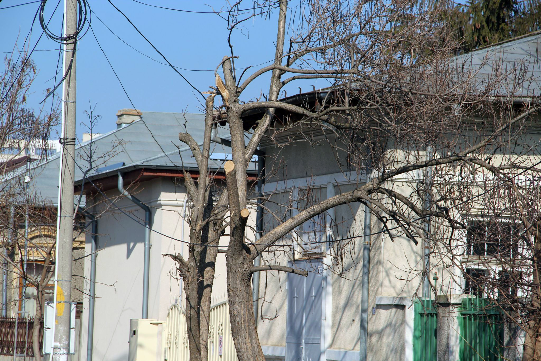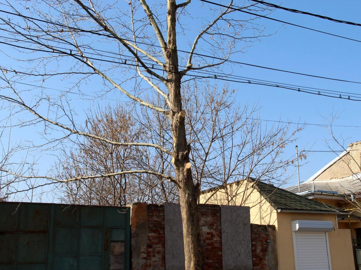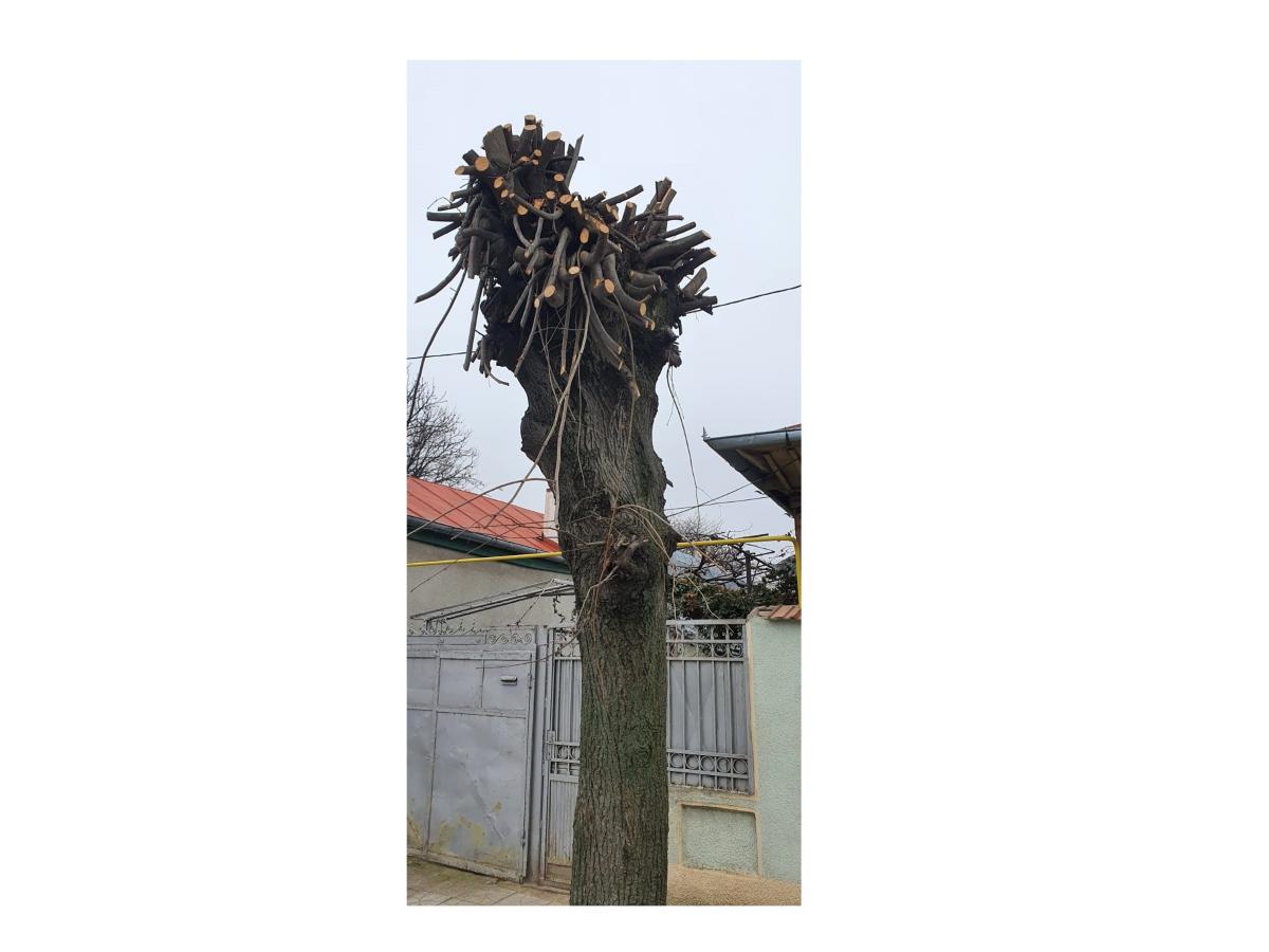 * o firmă angajată de Electrica Brăila pentru lucrări de modernizare a reţelei electrice pe de strada Ştefan cel Mare a hăcuit efectiv, fără respectarea celor mai elementare norme din domeniul horticol, copacii aflaţi pe traseul cablurilor * ”Acei pomi tineri distruşi de nişte Dorei au coronamentul total dezechilibrat, mijlocul tăiat şi nu se vor mai regenera niciodată”, spune primarul Marian Dragomir, care precizează că firma în cauză a acţionat fără niciun aviz din partea Primăriei Brăila * Poliţia Locală a aplicat o amendă de 2.500 lei