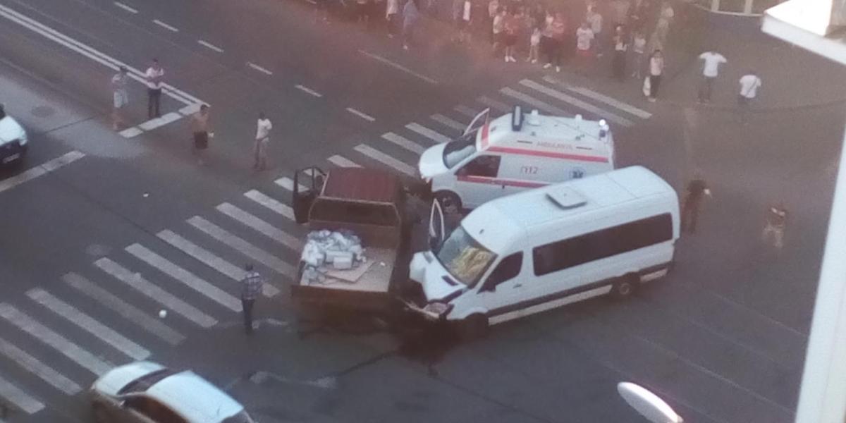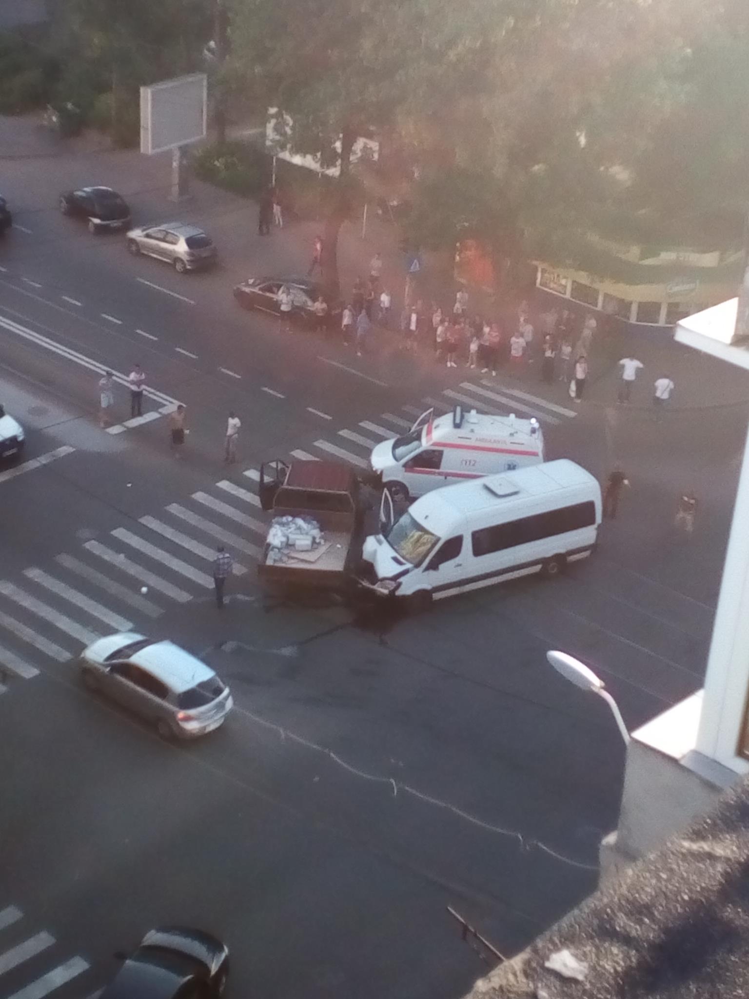 * un microbuz a intrat în coliziune cu o autoutilitară, iar în urma impactului unii călători au căzut printre scaune și au fost răniți ușor