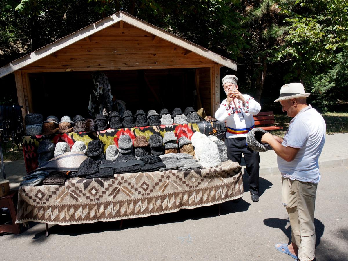 * primii creatori de costume populare tradiționale și-au întins, ieri, tarabele pe Faleza Dunării, la vestitul Târg al Meșterilor Populari * cei care au vizitat, deja, Târgul Anticarilor de pe Regala pot proba, pe gratis, cușmele din miel expuse de Badea Constantin, de la Joldești, Botoșani, sau pot îmbrăca o ie tradițională românescă de la talentatul creator de frumos Gianina Matei, din comuna brăileană Gemenele * "Sunt cojocar din tată-n fiu, ajuns la a cincea generație", ne-a spus meșterul popular * brăilenii se pot delecta cu o ceașcă de cafea la nisip, preparată în ibric de cupru de cafegiul Iulius Iancu din Ploiești