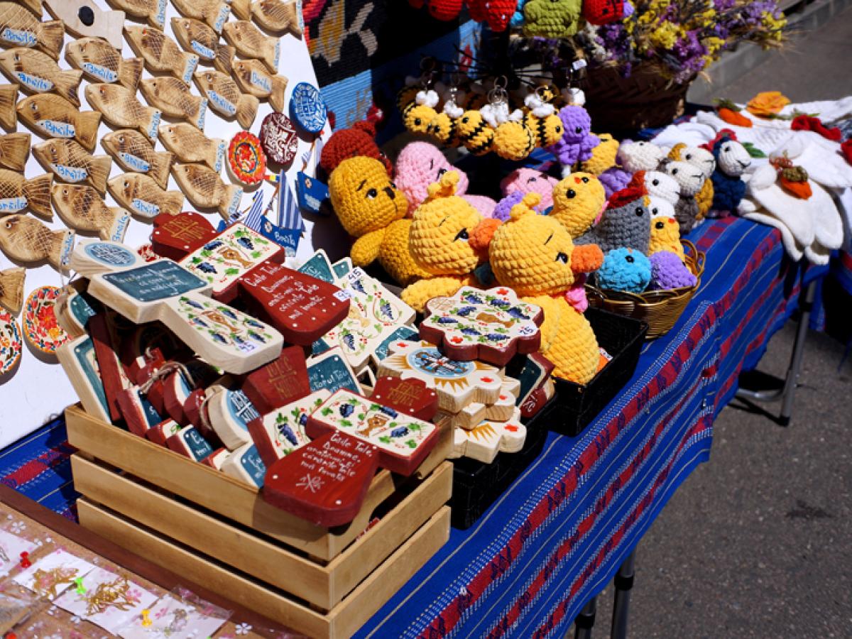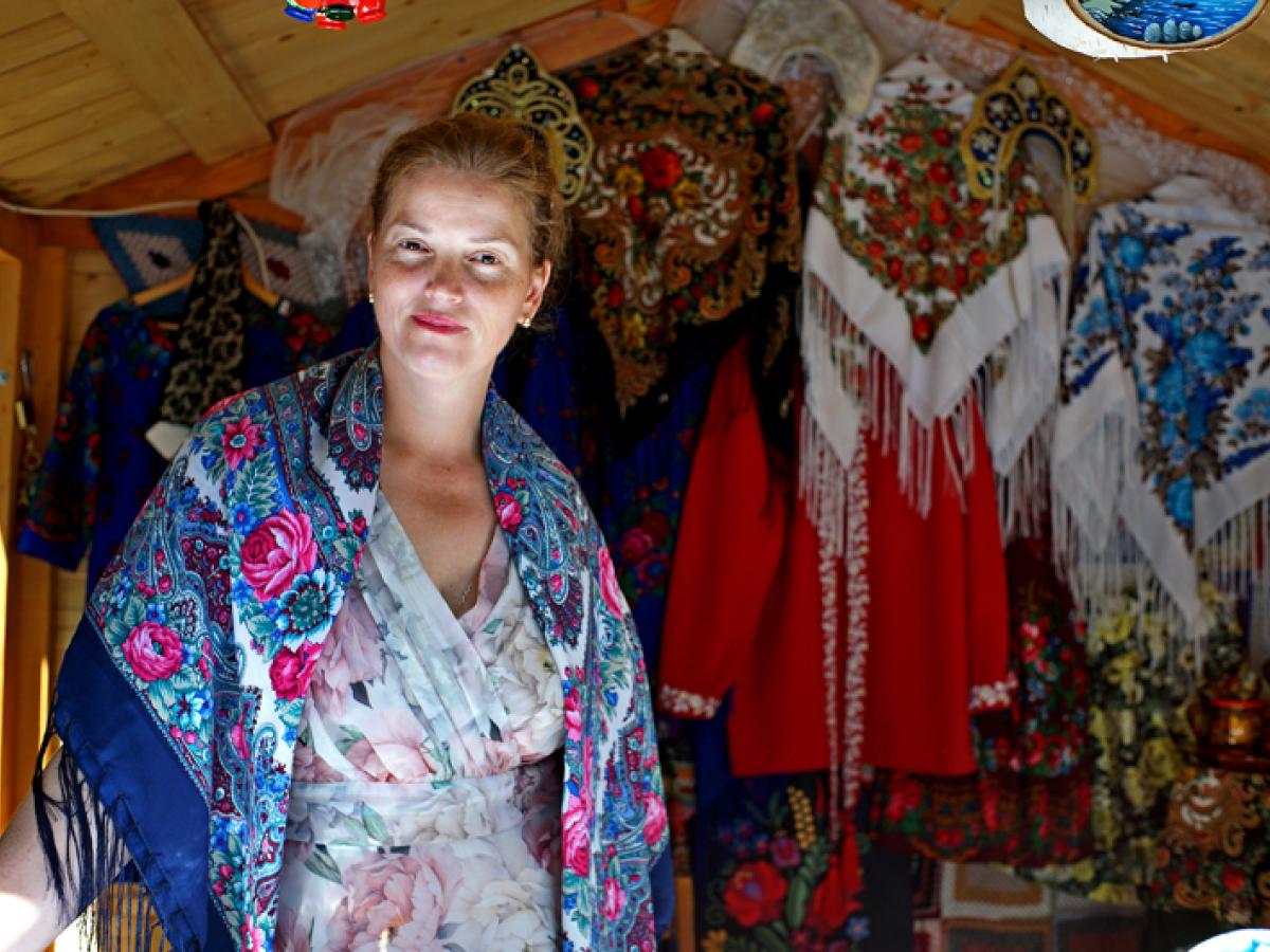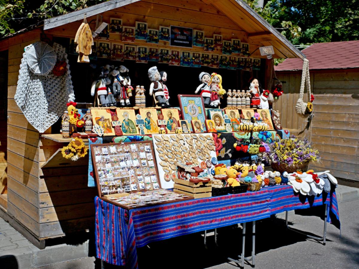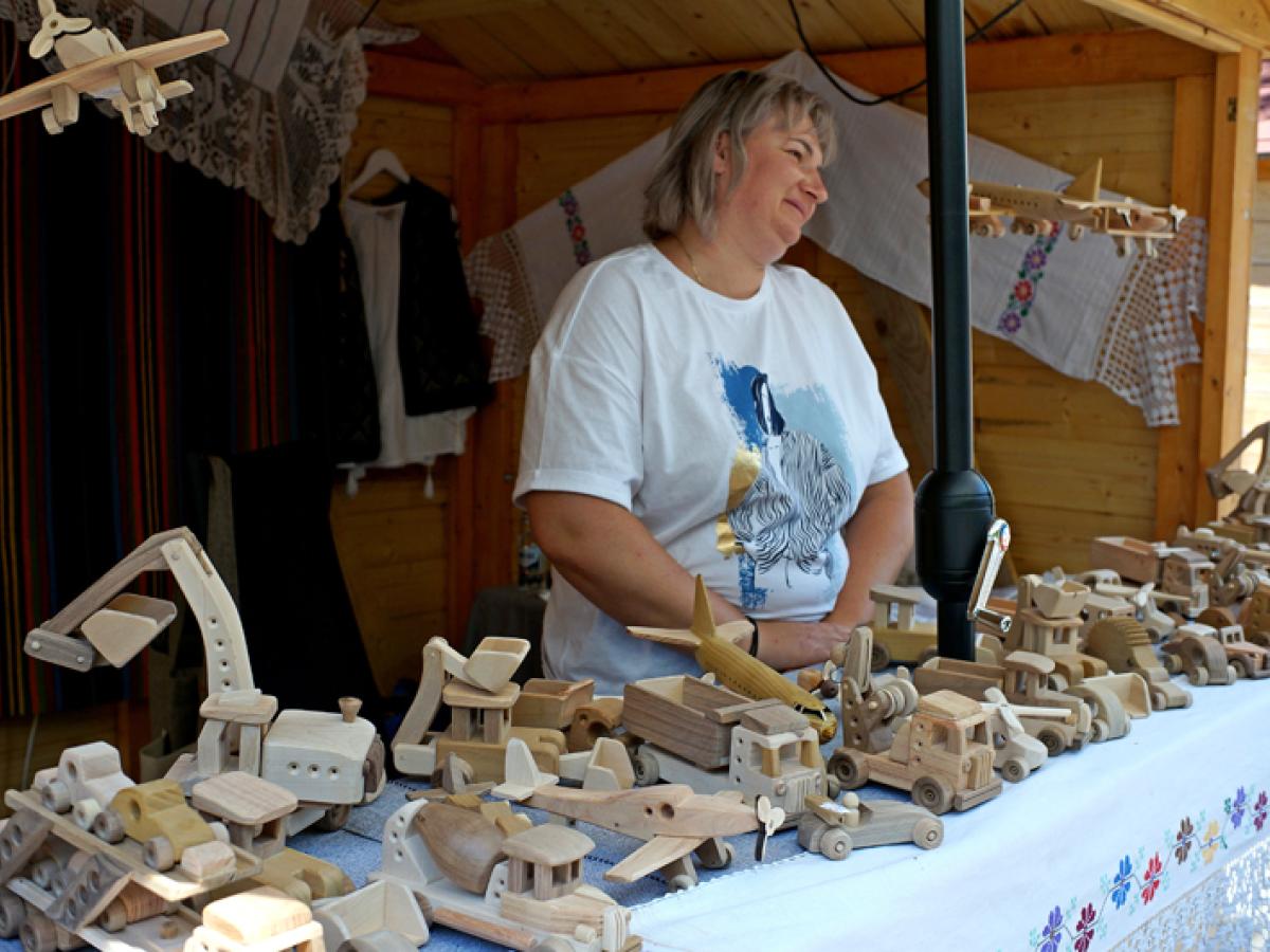 Florentina-Elena Andriev, membră a Comunității Rușilor Lipoveni din Brăila, își expune cu mândrie la Târgul Meșterilor Populari obiecte tradiționale realizate cu multă măiestrie, fie că vorbim de baticuri, articole de îmbrăcăminte sau de interior, ajutată de cei doi copii, Paula și Maximilian. Ceva mai departe, Elena Alexeev, din Chișinău, Moldova de peste Prut, ne bucură privirile cu ale sale jucării sculptate în lemn de salcâm, de tei sau de stajar. Soții Alexeev au deschis, la Molovata Nouă, raionul Dubăsari, un atelier de confecționat jucării din lemn pentru copii și își așteaptă oaspeții.
