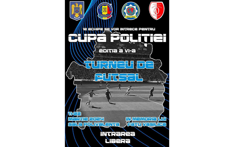 • turneul de fotbal în sală este organizat cu prilejul zilei Poliției Române • participă 12 echipe din cadrul structurilor Inspectoratului de Poliție Județean Brăila