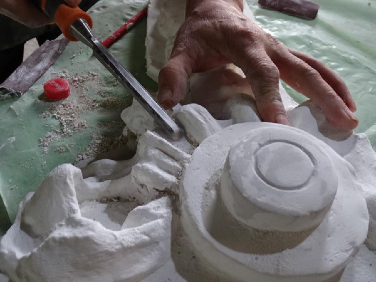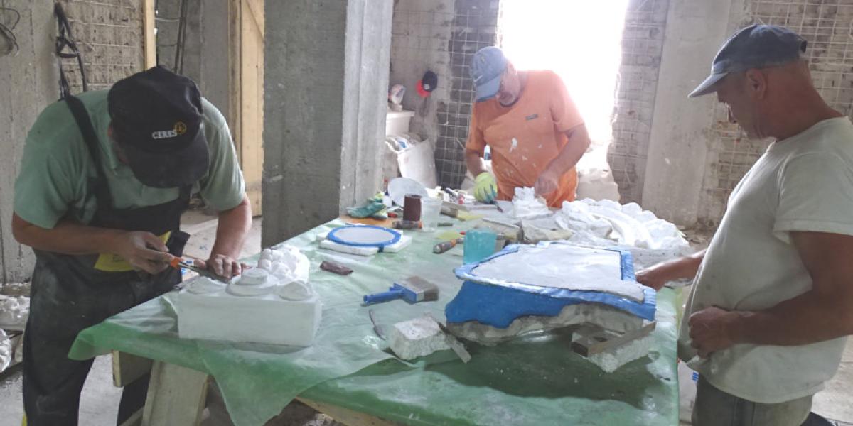 La masa de lucru a meseriașilor într-ale restaurării se lucrează în liniște, fără grabă, dar spornic, cu finețea și precizia unui anatomist, arheolog sau doctor în chirurgie plastică. Fiindcă sunt detalii și volume de mare complexitate, care imită florile, frunzele de laur ș.am.d. Sculele stau ordonat înșirate pe o masă mare sau într-o panoplie. “Există tot felul de scule și dispozitive pe piață, însă noi avem și altele, artizanale. Ni le-am făcut singuri, adaptate la mâna fiecăruia. Şi mai e ceva: dacă nu pipăi fiecare detaliu și nu ai ai o vedere foarte bună, un simț artistic înnăscut, degeaba... Trebuie să pui suflet în ceea ce faci, iar la fiecare piesă reușită și mai apoi la finalizarea întregii lucrări te bucuri că lași în urmă ceva frumos și trainic“, ne-a spus Marian Minea, unul dintre meseriașii care fac echipă cu meșterul Teodor Gurgu, pentru restaurea imobilului din Centrul Vechi al Brăilei.