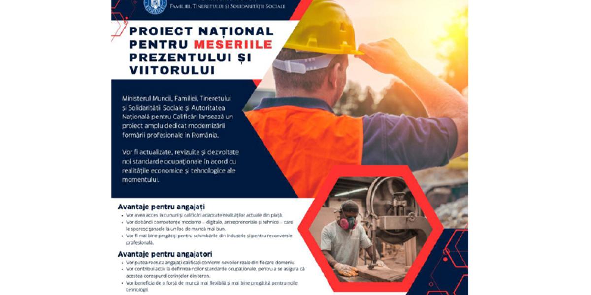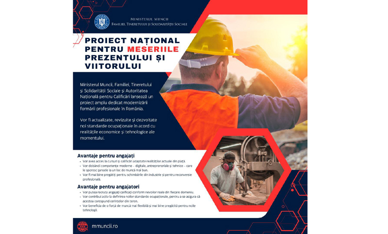 Proiect național pentru meseriile prezentului și viitorului, implementat de Ministerul Muncii, Familiei, Tineretului și Solidarității Sociale (MFTSS).