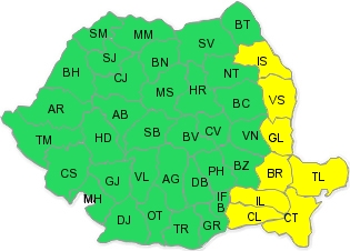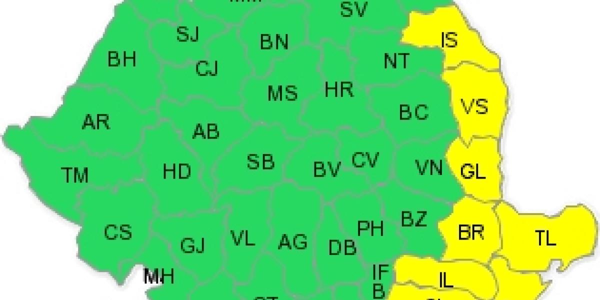 Administraţia Naţională de Meteorologie a emis două atenţionări cod galben de ploi, ninsori şi intensificări ale vântului, valabile de miercuri de la ora 18.00 până vineri la ora 12.00. Va ploua, în unele zone vor fi lapoviţă şi ninsoare, iar vântul va atinge la rafală viteze de peste 55 de kilometri pe oră.