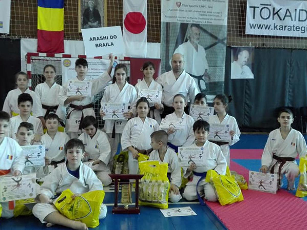 Sportivii de la CS “Arashi-do” Brăila s-au calificat, astfel, la finala Campionatului Naţional de Karate Tradiţional pentru copii, care se va desfăşura la Galaţi, în luna mai. Precizăm faptul că, la etapa de zonă de la Iaşi, au participat un număr de 20 de cluburi de profil din zona Moldova cu 260 de sportivi, toţi unul şi unul. Evenimentul sportiv a fost organizat de Federaţia Română de Karate Tradiţional şi Asociaţia Clubul Sportiv Risei Iaşi.