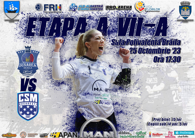 Miercuri, 25 octombrie, de la ora 17.30, în cadrul etapei a 7-a a Ligii Florilor este programată runda a VII-a din cadrul Ligii Florilor, în care HC Dunărea Brăila va întâlni, în Polivalentă, campioana en titre și totodată liderul actualei ediții de campionat, CSM București.