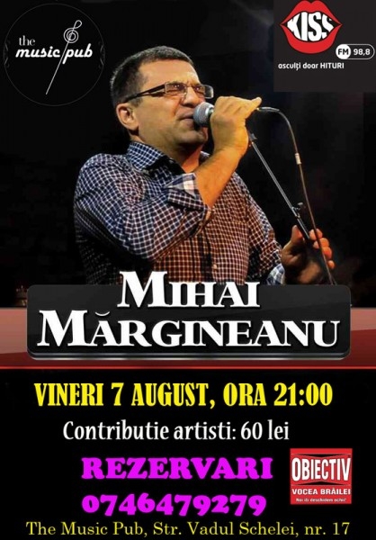 Binecunoscutul artist Mihai Mărgineanu va susţine un concert în stilul său caracteristic, în seara de vineri, pe 7 august, pe scena The Music Pub - La Terrasse. Potrivit organizatorului evenimentului, muzicutistul Cătălin Curcă, show-ul este programat la ora 21:00 şi se anunţă unul incendiar pentru că "o aduce şi pe Jana, o să fie acolo şi Zaritza, poate şi Gore"! Trebuie subliniat faptul că actorul şi cântăretul Mihai Mărgineanu este unul dintre cei mai prolifici artişti de folk, iar muzica sa este inspirată, printre altele, de folclorul urban. Desigur, alte piese sunt preluări ale unor cântece vechi de pahar, dar artistul întotdeauna a avut grijă să capteze atenţia publicului şi cu piesele sale proprii. Versurile sunt adeseori explicite, în dulcele stil propriu. Deşi s-a lansat în muzică destul de târziu, la vârsta de 36 de ani, piesele sale au avut un succes la public aproape instant. De asemenea, Mărgineanu este cunoscut cinefililor şi din rolul lui Ardiles, pe care îl joacă în cel mai iubit serial de comedie românesc din ultimii 10 ani, "Las Fierbinţi", serial pentru care asigură şi coloana sonoră. În cadrul spectacolului din Brăila, acesta va interpreta atât piese vechi, consacrate, pe care fanii abia aşteaptă să le audă live, dar va prezenta şi producţii proaspăt ieşite din studio. De reţinut că biletul pentru concertul Mihai Mărgineanu costă 60 lei. Cei interesaţi de oricare dintre evenimentele găzduite de The Music Pub - La Terrasse, în această săptămână, pot face rezervări la numărul de telefon 0746479279.