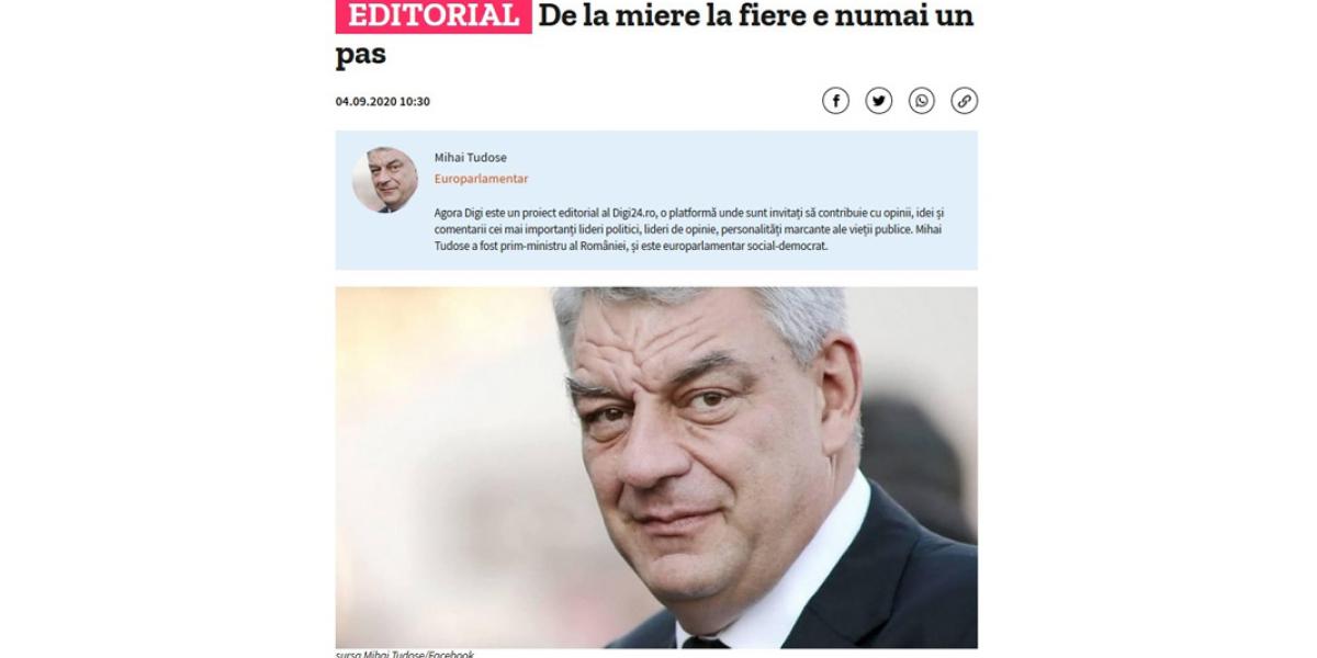 Mihai Tudose este total dezamăgit de deciziile Guvernului PNL, acuzând că liberalii transformă soluţia punctuală a împrumuturilor într-un adevărat viciu. Europarlamentarul PSD Brăila a publicat un editorial pe această temă la digi24.ro, intitulat “De la miere la fiere e numai un pas”, amintind, printre altele că în această perioadă la Bruxelles, prioritatea este adoptarea planului UE de redresare economică. Ei bine, potrivit lui Tudose, în vreme ce guvernele ţărilor membre pregătesc programele de relansare, ministrul Finanţelor, Florin Cîţu, continuă să facă împrumuturi.
