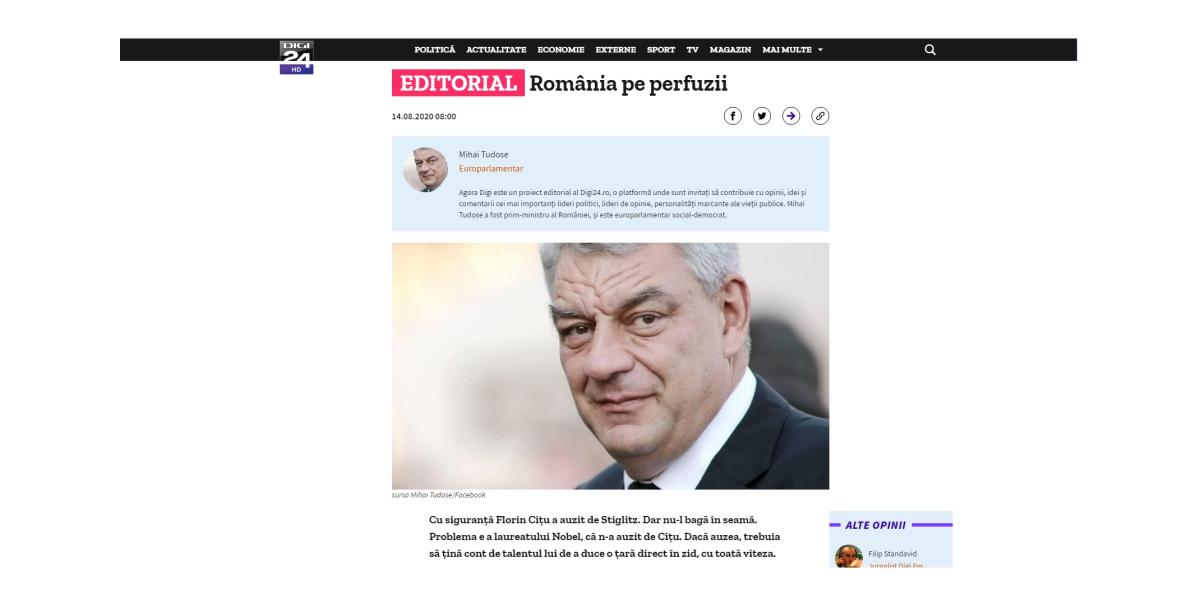 ”Cu siguranță Florin Cîțu a auzit de Stiglitz. Dar nu-l bagă în seamă. Problema e a laureatului Nobel, că n-a auzit de Cîțu. Dacă auzea, trebuia să țină cont de talentul lui de a duce o țară direct în zid, cu toată viteza. Joseph Stiglitz și Hamid Rashid, coordonatorul departamentului ONU pentru monitorizarea economică globală, au analizat recent riscurile unei crize globale a datoriilor, pornind de la observația că peste o sută de țări cu venituri mici și medii trebuie să plătească în acest an datorii de 130 de miliarde de dolari. Din această sumă, jumătate se va duce la creditori privați. S-a ajuns aici în urma triplării datoriei publice, din cauza relaxării cantitative la care s-a recurs după criza financiară din 2008. «Acum a venit ziua socotelilor», avertizează cei doi economiști. De aici, dl Cîțu ar pierde firul. Pentru că, împreună cu colegii lui de guvern, e prizonierul unei logici strict electorale. O logică de un pragmatism tare cinic în vremuri de pericol medical generalizat și acut. Dar și de risc economic și social major, după cum atenționează Stiglitz și Rashid: «O criză globală a datoriilor va arunca milioane de oameni în șomaj și va alimenta instabilitatea și violența în întreaga lume». Soluțiile propuse sunt scutirea de la plata datoriilor pe timpul pandemiei și, în perspectivă, o restructurare profundă a acestor datorii excesive, printr-un program de răscumpărare a lor”, a punctat Tudose.