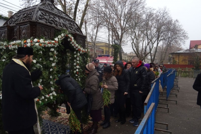 În timp ce Î.P.S. Sa Casian, Arhiepiscopul Dunării de Jos, săvârşea slujba religioasă alături de un sobor de preoţi, iar lăcaşul sfânt devenise neîncăpător, unii credincioşi s-au înghesuit la sărmăluţele cu mămăliguţă oferite anual de municipalitate. Primăria a oferit în acest an circa 4.000 de porţii, iar mâncarea a fost gătită în bucătăriile a două cămine de bătrâni din subordinea Direcţiei de Asistenţă Socială. Pe lângă acestea, mai mulţi angajaţi ai centrelor au stat în permanenţă printre pelerini, oferindu-le ceaiuri fierbinţi pentru a-i mai încălzi.