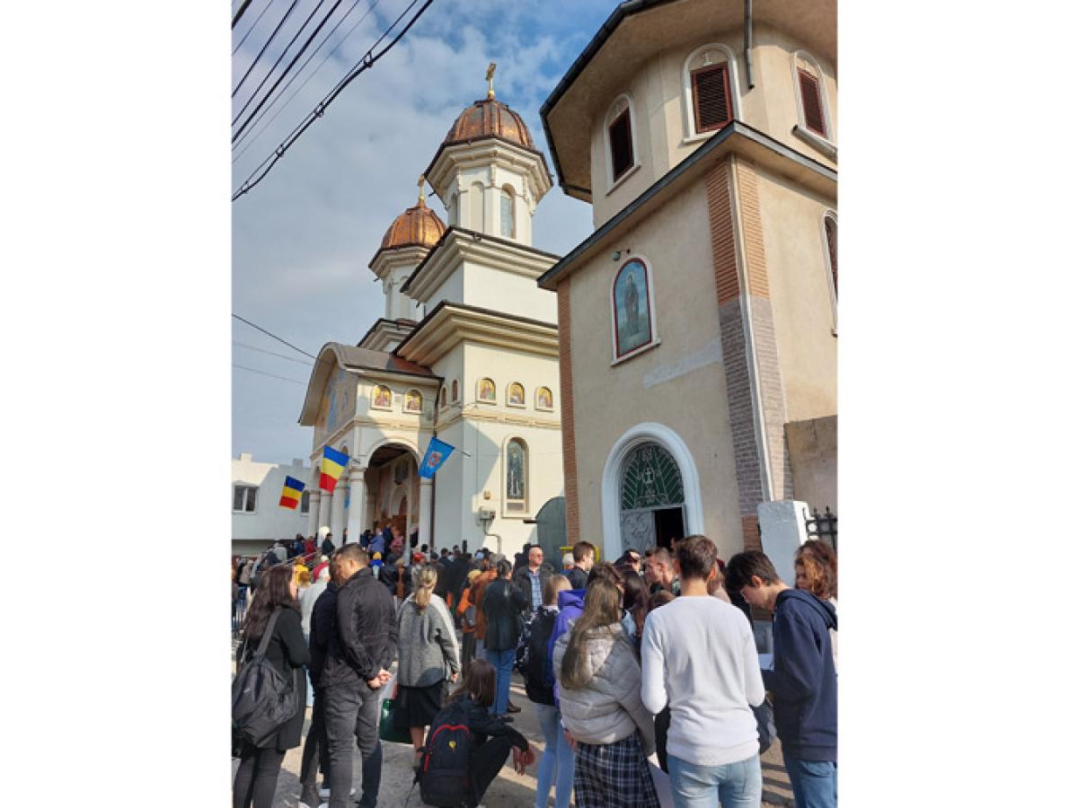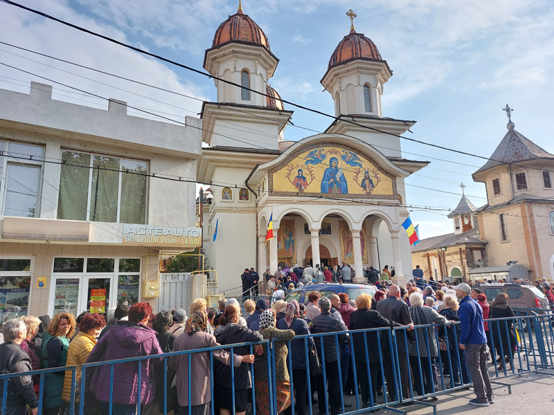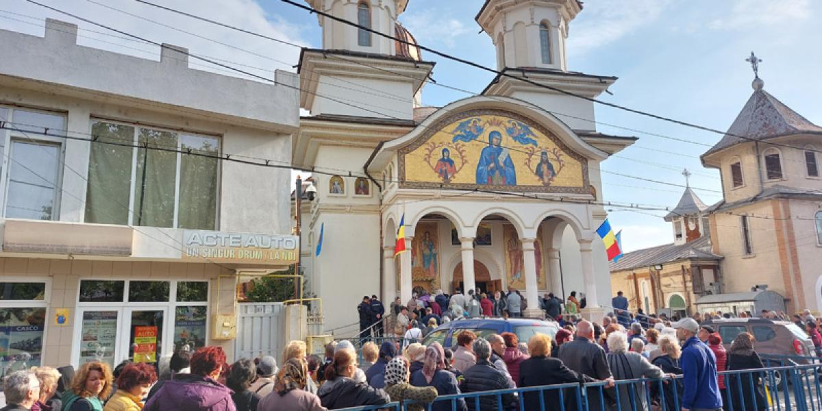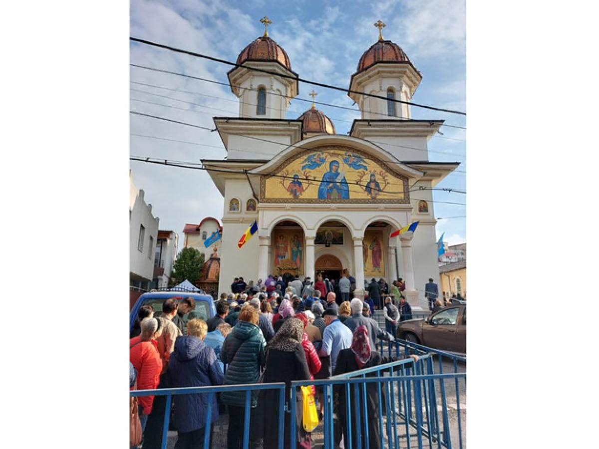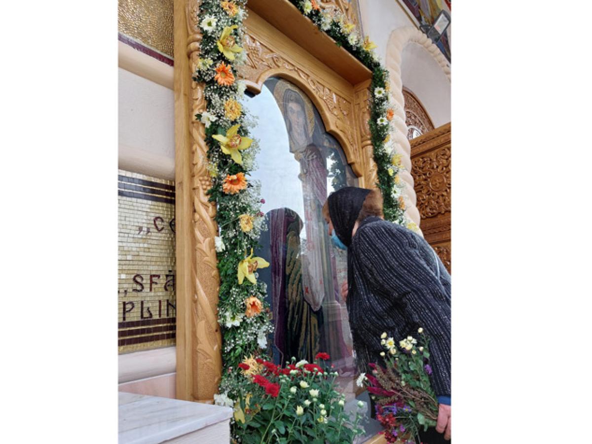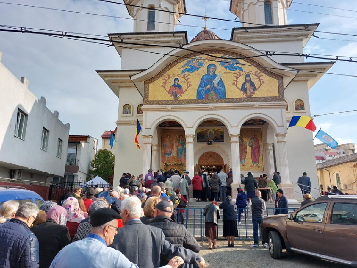 Ziua de hram de la "Cuvioasa Parascheva" a venit ca o binecuvântare, ca un balsam pentru sufletele celor care i-au cerut, vineri, ajutor "Sfintei de la Iași", atât de iubită și în ținutul Dunării de Jos. Dacă dimineață soarele se pitise, timid, printre nori, după ora 10.00, când sute de oameni așteptau să treacă pe la icoana Sfintei, astrul ceresc lumina blând turlele sfântului lăcaș înconjurat de o mare de oameni. Mari și mici, tineri și bătrâni, veniseră să ceară ajutorul Cuvioasei și să se roage Lui Dumnezeu. Alții aduseseră ofrande pentru sufletele celor adormiți, inclusiv must, pâine, lipie, fructe și vin nou, după obicei. Parcă niciodată nu au fost atâția tineri la hramul acestei biserici. Credincioșii au ascultat cu evlavie Sfânta Liturghie de hram și imnul Cuvioasei Parascheva, iar forțele de ordine - jandarmi și polițiști - au supravegheat zona și au montat garduri de protecție pentru mulțimea care aștepta la rând la icoana făcătoare de minuni a Cuvioasei Parascheva.