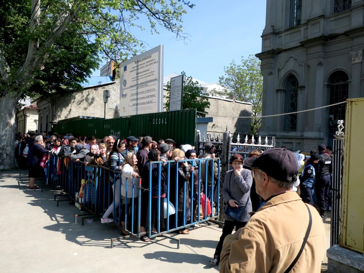 Ca în fiecare an de sărbătoarea Izvorului Tămăduirii, câteva mii de credincioşi şi-au aşteptat rândul, începând din după-amiaza zilei de joi, 2 mai, pentru a lua apă sfinţită din subsolul Bisericii Greceşti din Brăila, de la izvorul despre care se spune că face minuni dumnezeieşti. Mânaţi de credinţă şi speranţă, mulţi dintre cei care au avut răbdare câteva ore pentru a putea lua agheazmă erau veniţi din judeţele învecinate. Unii au participat pentru prima dată la procesiune, alţii aveau deja experienţa anilor trecuţi. “De azi dimineaţă, de la ora 5.00 aştept. Sunt din Vrancea. Acum e prima dată când vin. Am aflat de la prieteni, ei veneau aici de mult timp”, ne-a spus, vineri, în jurul orei 11.30, Georgel, un bărbat în vârstă de 60 de ani. În schimb, surorile Sariţa, Săftica, Violeta şi Elena, cu vârste cuprinse între 60 şi 71 de ani, vin de foarte mulţi ani pentru a lua apă sfinţită de la Biserica Greacă. “Suntem din Galaţi. Venim în fiecare an. Pentru sănătate, pentru stropirea casei şi pentru suflet. În alţi ani, stăteam mai mult la coadă. Veneam cu o seară înainte şi dormeam aici, ne aduceam scaune. De data asta, a fost lume ceva mai puţină şi nu a mai trebuit să stăm atât de mult la rând”, ne-au spus gălăţencele.