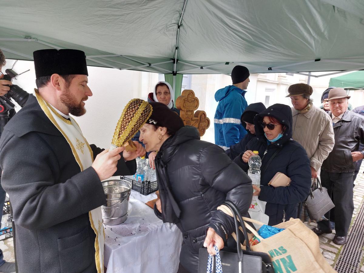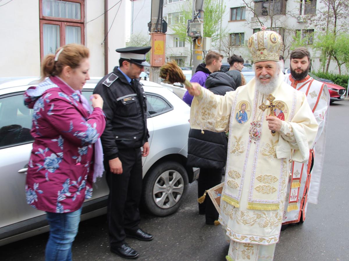 Ierarhul i-a binecuvântat pe credincioșii aflați în biserică și pe cei din afara ei și i-a stropit cu agheasmă, după obiceiul creștin.