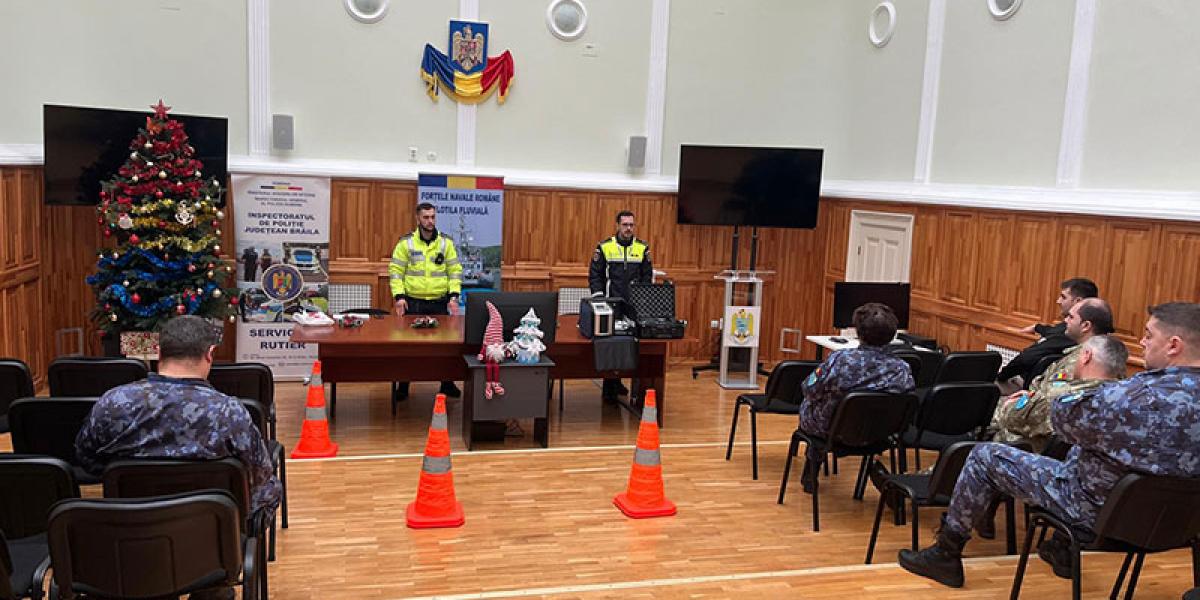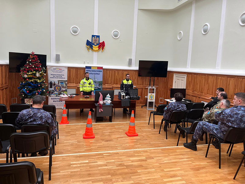 În perioada premergătoare sărbătorilor de iarnă, polițiștii au desfășurat o activitate de instruire și prevenire adresată militarilor din cadrul Comandamentului Flotilei Fluviale ”Mihail Kogălniceanu” Brăila și Portului Militar Brăila. Activitatea a avut ca scop creșterea gradului de siguranță rutieră și conștientizarea riscurilor asociate circulației pe drumurile publice. ”În cadrul instruirii, polițiștii rutieri au prezentat și discutat aspecte esențiale precum: respectarea regulilor de circulație pe drumurile publice; obligațiile și responsabilitățile participanților la trafic, în calitate de pietoni, conducători de vehicule și conducători de autovehicule; riscurile și consecințele legale ale conducerii sub influența băuturilor alcoolice; pericolele generate de consumul de substanțe psihoactive și impactul acestora asupra capacității de a conduce în siguranță”, au spus reprezentanții Inspectoratului de Poliție Județean Brăila.