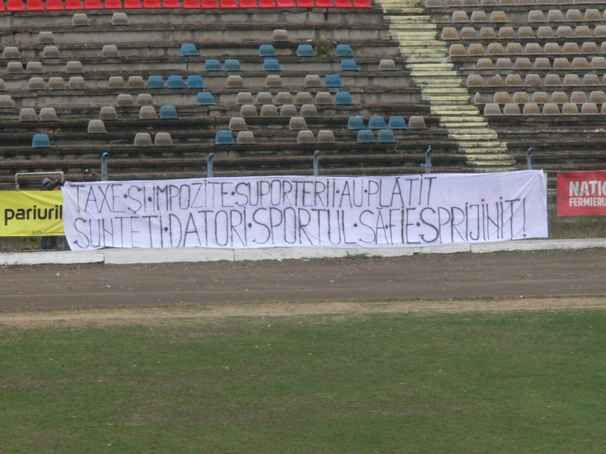 • Dacia Unirea a câştigat primul meci din acest sezon, 2-1, pe Municipal, cu Daco-Getica Bucureşti, şi a predat “lanterna roşie” celor de la ACS Poli Timişoara • şi la acest joc, suporterii au afişat un mesaj pentru oficialităţile locale: “Taxe, impozite, suporterii au plătit, sunteţi datori sportul să fie sprijinit!”
