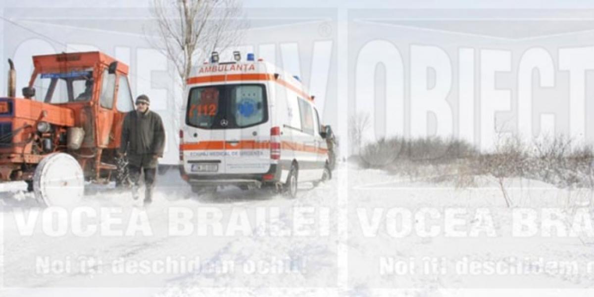 Mai multe ambulanţe încercau, duminică după-amiază, să ajungă la bolnavii din judeţul Brăila, însă autosanitarele au înaintat extrem de greu din cauza viscolului puternic. Potrivit managerului SAJ, dr. Viorica Uscatu, nicio autospecială nu a rămas blocată, fiecare misiune de salvare a pacienţilor fiind însoţită şi de maşini de deszăpezire, care să le poată deschide drumul. Cu toate acestea, au fost şi două cazuri la care ambulanţele nu ajunseseră până în jurul orei 16, din cauza circulaţiei dificile pe drumurile naţionale şi judeţene. "Ambulanţele care au plecat la Galbenu, înainte de ora prânzului, pentru a acorda ajutor medical unor persoane degerate, încă nu au ajuns. Mai avem o solicitare în aşteptare, este vorba despre o gravidă din judeţul Buzău, care trebuie preluată la Jirlău şi transportată la Brăila, deoarece drumul către Buzău este blocat", a precizat dr. Viorica Uscatu. În localitatea Galbenu, aflată la limita dintre judeţele Brăila şi Buzău, au rămas blocate două utilaje, pentru deszăpezirea cărora a fost trimis un detaşament al MAPN, cu două vole. Au existat şi trei oameni blocaţi în zăpadă, care au fost salvaţi şi duşi în comuna Galbenu. Unul dintre ei prezenta degerături la nivelul membrelor superioare.