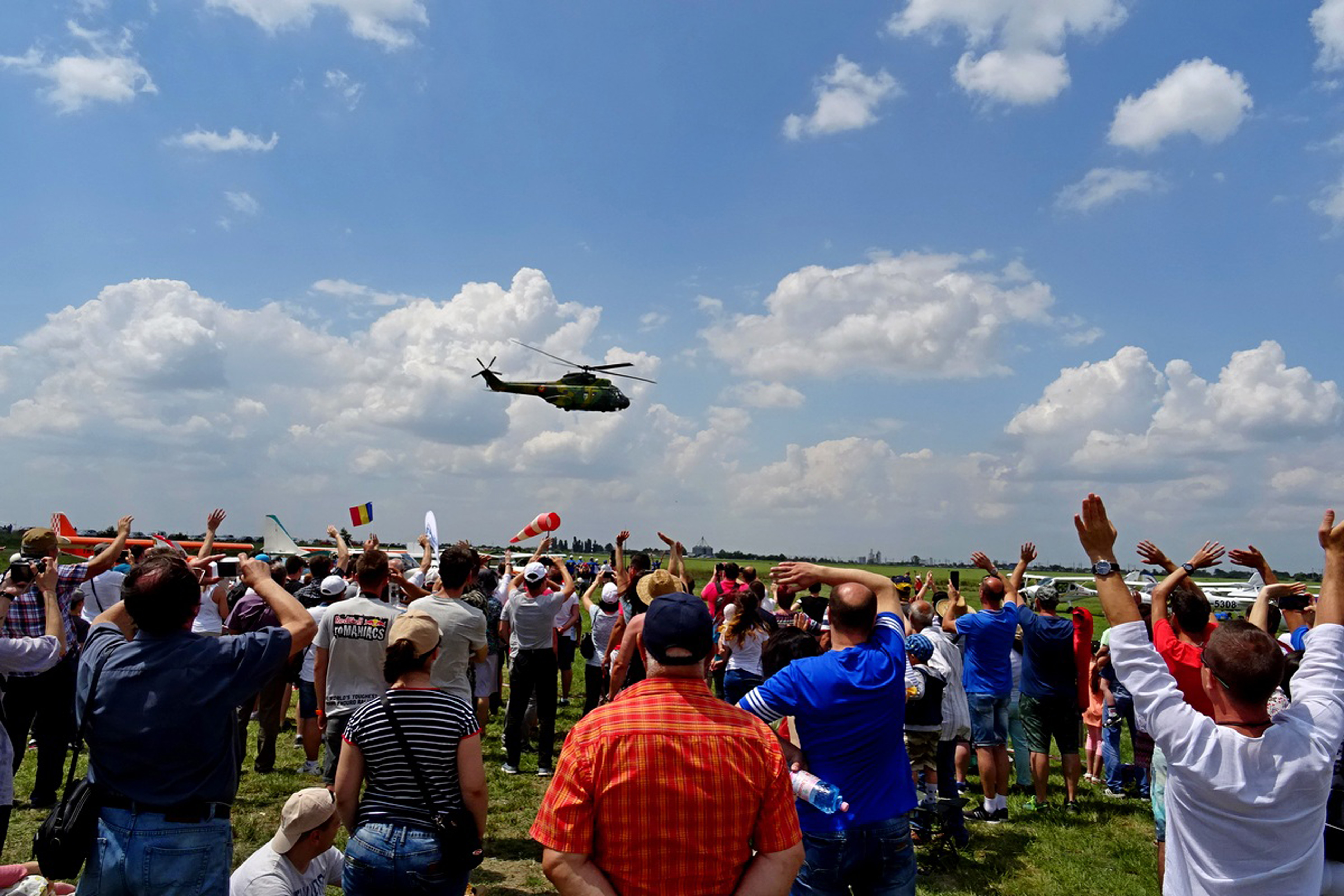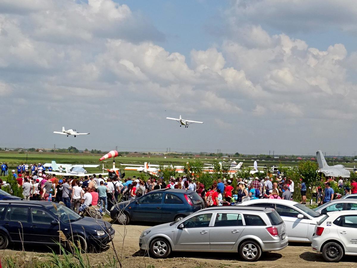 În ceea ce priveşte spectacolul aerian, cei care au reuşit să depăşească obstacolele rutiere şi să ajungă în zona aerodromului nu au fost deloc dezamăgiţi. În jurul orei 10.00, au început demonstraţiile aparatelor de zbor de mici dimensiuni. Aşa cum au anunţat organizatorii, au putut fi admirate circa 30 de avioane de agrement, motoparapante, motodeltaplane sau girocoptere. Acestea au zburat în grup sau individual, piloţii civili arătându-le privitorilor cât de bine stăpânesc manşa propriilor aparate de zbor. Din fericire, vremea a ţinut cu aviatorii: chiar dacă s-a înnorat la un moment dat, ploaia a ocolit zona aerodromului, iar spectacolul a putut continua fără probleme.