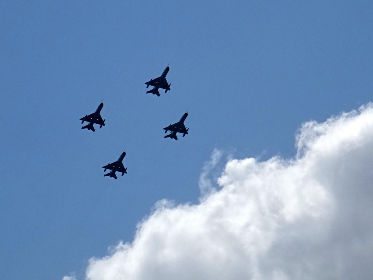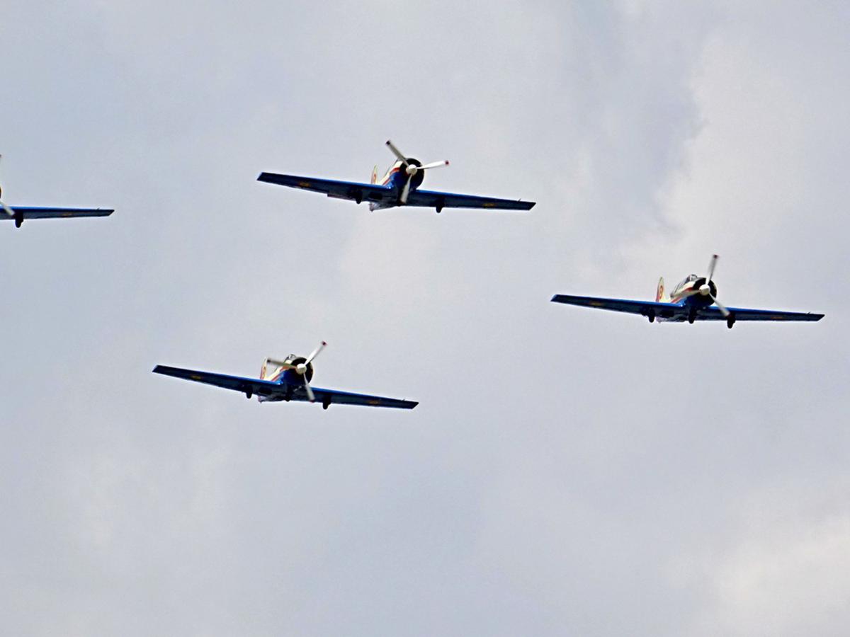 Demonstraţiile aeronavelor militare au început după ora 12.00. Au zburat deasupra aerodromului, făcând manevre spectaculoase şi aplaudate de public, elicoptere IAR 316B şi IAR 330 Puma Socat, o formaţie de patru avioane de antrenament româneşti YAK 52, urmată de o altă formaţie, tot de patru avioane de luptă şi antrenament YAR 99 Şoim. În jurul orei 13.00, au zguduit aerodromul cu vuietul motoarelor supersonice, patru aeronave de luptă MIG 21 Lancer, care au executat câteva manevre perfect coordonate. Spectacolul a fost “închis” de două supersonice F 16 Falcon, la fel de zgomotoase ca şi MIG-urile dar cu un plus de manevrabilitate care le permite să facă viraje mult mai strânse, pe cât de spectaculoase, pe atât de importante într-o luptă reală.