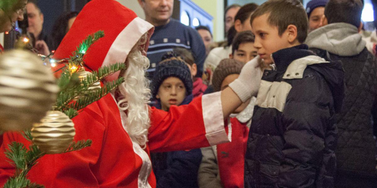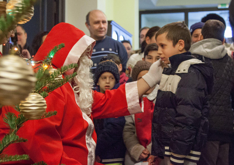 Moş Crăciun şi-a făcut apariţia însoţit de o ceată de colindători. Grupul format din Ionel, Alexandru, Radian, Silviu şi Romeo a susţinut un mic program artistic de colinde. Grupul există de 16 ani, însă nu are încă un nume. “Nu avem un nume, deşi suntem de 16 ani împreună. Lumea ştie că noi am crescut în centrele de plasament, iar asta nu e o ruşine, ci din contră, am învăţat foarte multe. Noi am crescut împreună, ne ştim de o viaţă. Am fost un grup mai mare, dar acum am rămas doar cinci. Am nişte colegi care se implică foarte mult”, ne-a spus Ionel Cristea, liderul cetei de colindători.