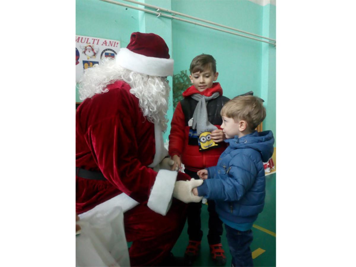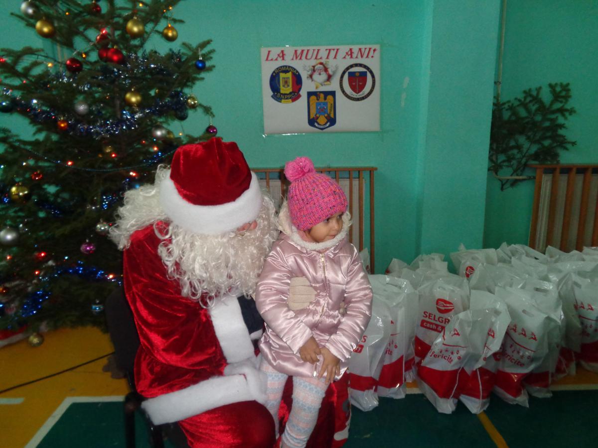 Mai mici sau mai mari, fetiţele şi băieţeii oamenilor în uniformă s-au aşezat, pe rând, în braţe la Moşul şi i-au povestit acestuia cât de cuminţi au fost peste an şi că au ascultat de părinţi, apoi l-au colindat şi i-au recitat poezii. Drept răsplată, Moş Crăciun le-a oferit cadouri din tolba sa mare.