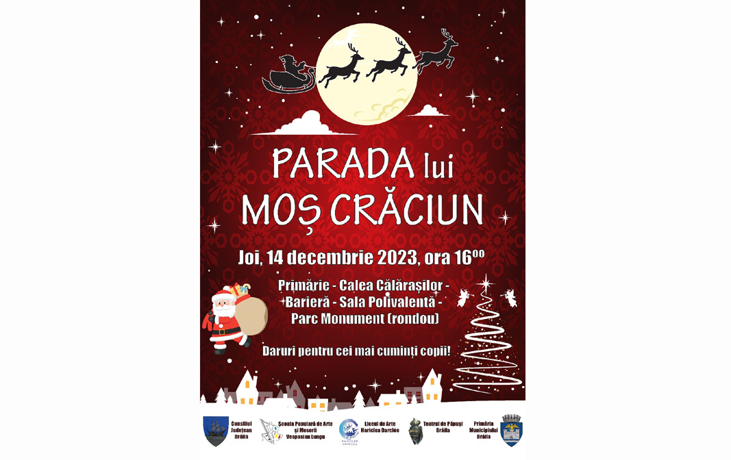 Ho ho ho! Ca și anul trecut, Moș Crăciun va pleca din Laponia și va ajunge la Brăila, în fața Primăriei, joi, pe 14 decembrie, la ora 16:00. Moșul și Crăiasa Zăpezii îi așteaptă pe cei mici pe platoul din fața Primăriei pentru a face poze, iar apoi va pleca spre Parcul Monument, în jurul orei 16:15. „Moș Crăciun, Crăiasa Zăpezii, zâne, prințese și personaje din desene animate vor pleca către Parcul Monument pe traseul Primăria Brăila - Calea Călărașilor - Bariera Călărașilor - Strada Pietății - Aleea Centrală a Parcului Monument cu destinație finală Rondoul de la Parcul Monument”, au transmis organizatorii, care îi așteaptă pe copii în număr cât mai mare.