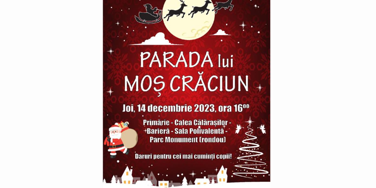 • joi, 14 decembrie, la ora 16:00, Moș Crăciun îi va aștepta pe copii în fața Primăriei • de acolo Moșul va pleca în Parcul Monument pentru a aprinde luminile de sărbătoare