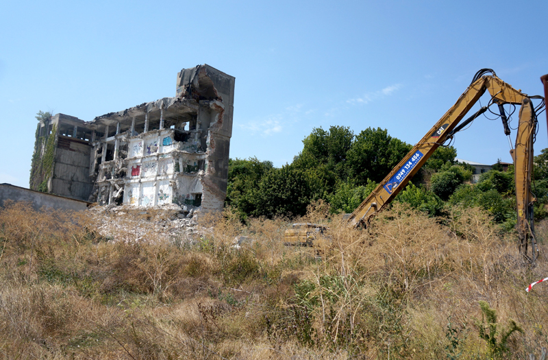 Cert este că, indiferent dacă va păstra sau nu terenul, actualul proprietar trebuie să se grăbească cu operațiunea de demolare, deoarece autorizația de desființare a respectivului corp de clădire a fost emisă de Primărie în octombrie 2022 și este valabilă până la data de 15 septembrie anul curent. Mai sunt așadar doar câteva săptămâni până la expirarea autorizației, iar demolarea se dovedește a fi foarte anevoiasă, clădirea având o structură de rezistență mult mai solidă decât părea la prima vedere. În fapt, este vorba despre o fostă moară construită de Întreprinderea de Panificație a Brăilei spre sfârșitul anilor '80, deci cu puțin înainte de Revoluție. După schimbarea de regim din 1989, moara a intrat în patrimoniul fostei întreprinderi ”Demopan” SA, iar după falimentul acesteia a fost vândută până când a ajuns la actualul proprietar. În ultimii ani, clădirea ajunsese ”raiul” iubitorilor de graffiti, care au acoperit cu desene fiecare metru pătrat din pereții interiori. Totuși, cei care se aventurau la etajele superioare se expuneau unui real pericol, deoarece, din cauza furturilor din elementele structurii de rezistență, scările interioare începuseră se se prăbușească, la fel și unele planșee. Dar, deși părea că s-a șubrezit de tot și e în pericol de năruire, construcția s-a dovedit a fi o adevărată provocare, atunci când a început demolarea efectivă. ”Înaintăm foarte greu, e mult mai solidă decât părea la prima vedere. A fost construită conform normativelor intrate în vigoare după cutremurul din 1977 și chiar s-a făcut treabă de calitate, armătura, betonul s-au pus cu simț de răspundere”, ne-a spus actualul proprietar.