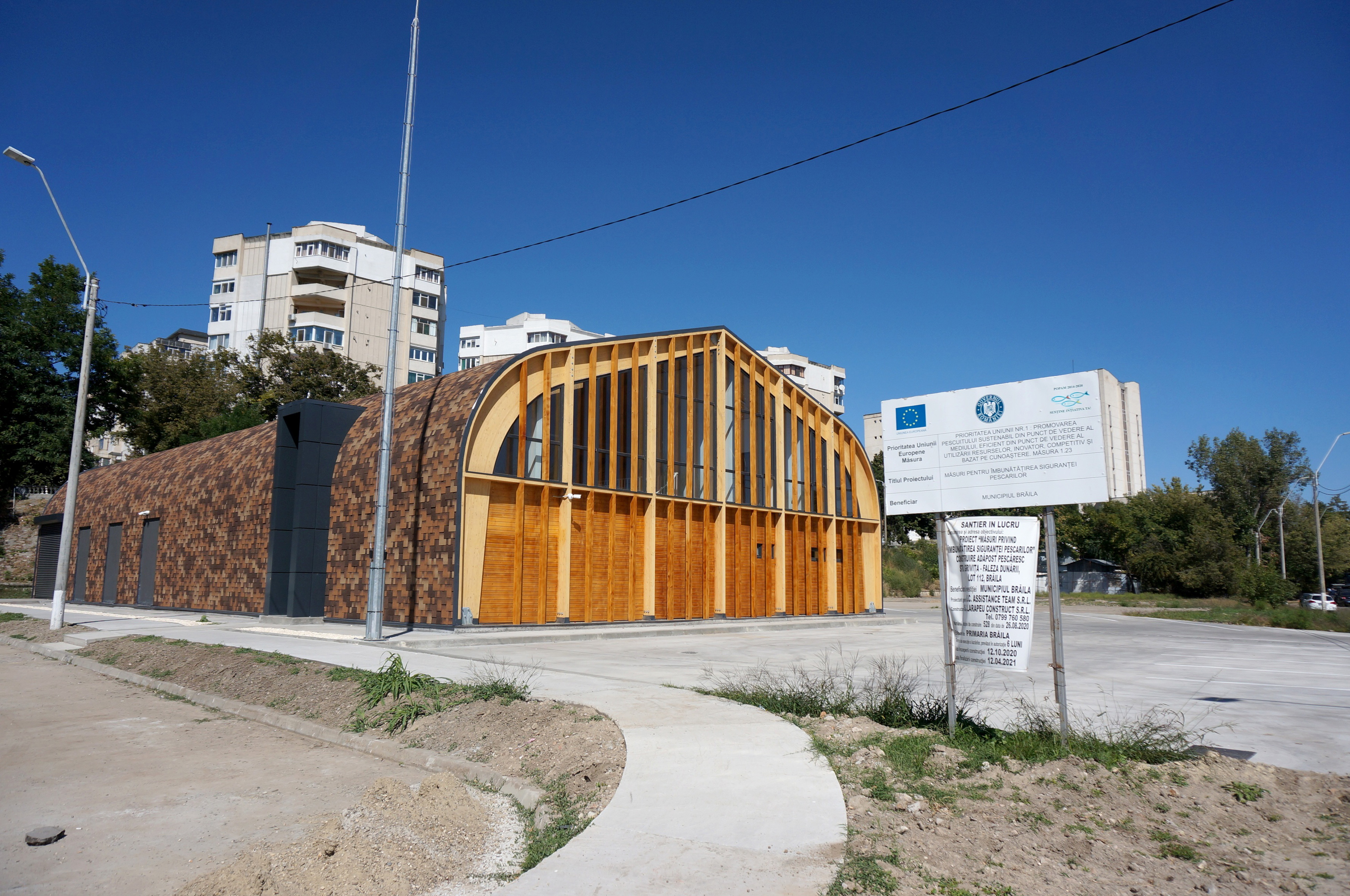 În ceea ce privește construcția adăpostului, șantierul a fost deschis în luna octombrie a anului trecut, iar lucrarea trebuia dată ”la gata” în data de 12 aprilie a.c. Termenul de execuție a fost depășit, însă, cu câteva luni, din cauza întârzierii cu care au fost livrate componentele de lemn, a căror formă specială a necesitat un timp mai mare de execuție decât fusese prevăzut inițial.
