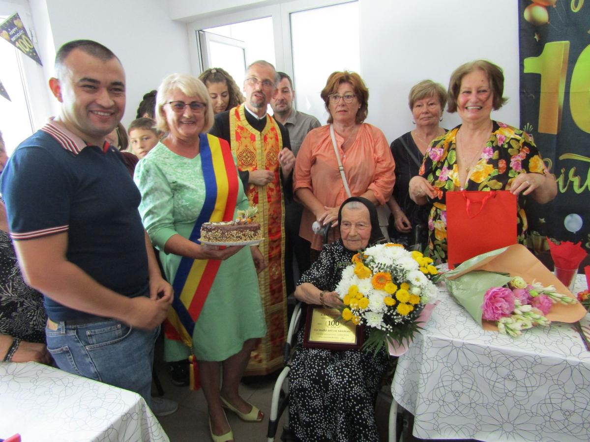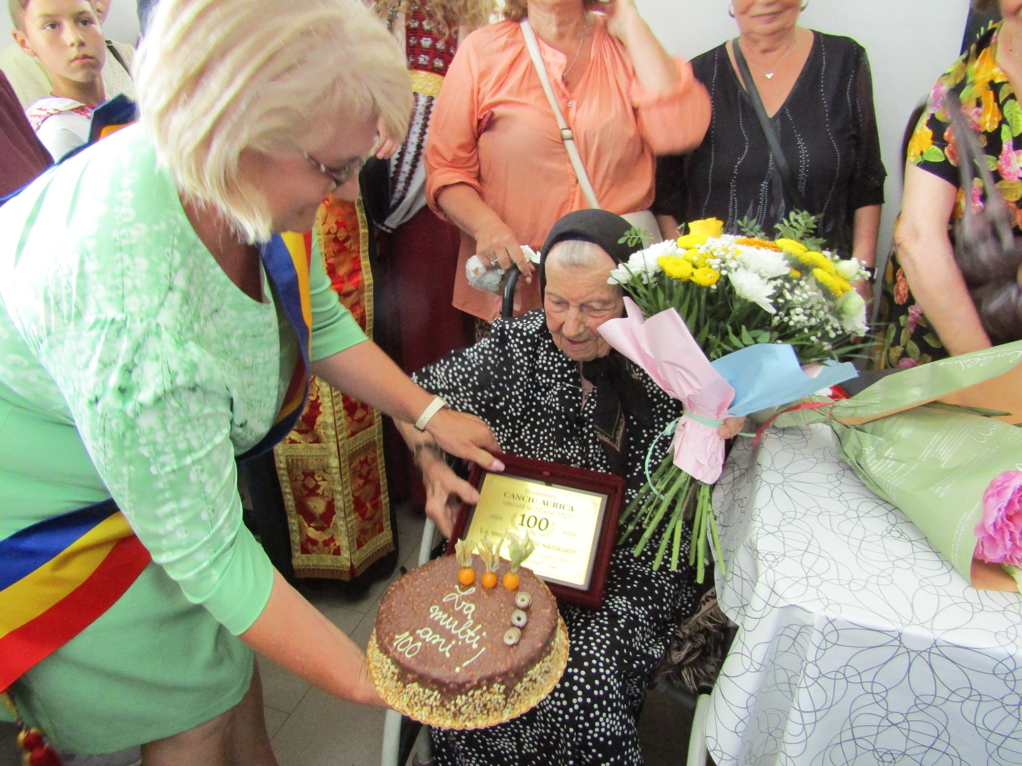 * chiar de Sfântul Ilie Tesviteanul, cunoscut ca Făcătorul de minuni, Aurica Canciu a împlinit 100 de ani * primarul comunei, Ana Cornelia Măcrineanu, a organizat un eveniment festiv * invitat a fost deputatul PNL Alexandru Popa * “Sunt fericită că în comuna noastră avem oameni longevivi pe care să-i putem sărbători”, a spus cu acest prilej Ana Cornelia Măcrineanu