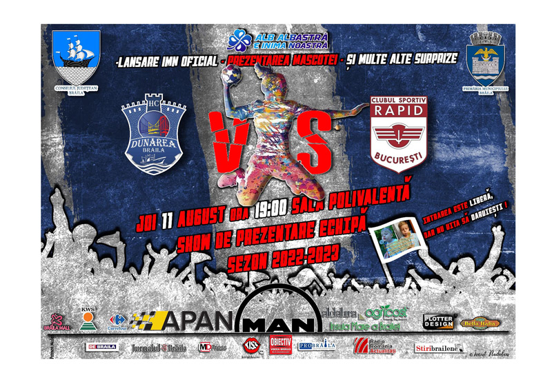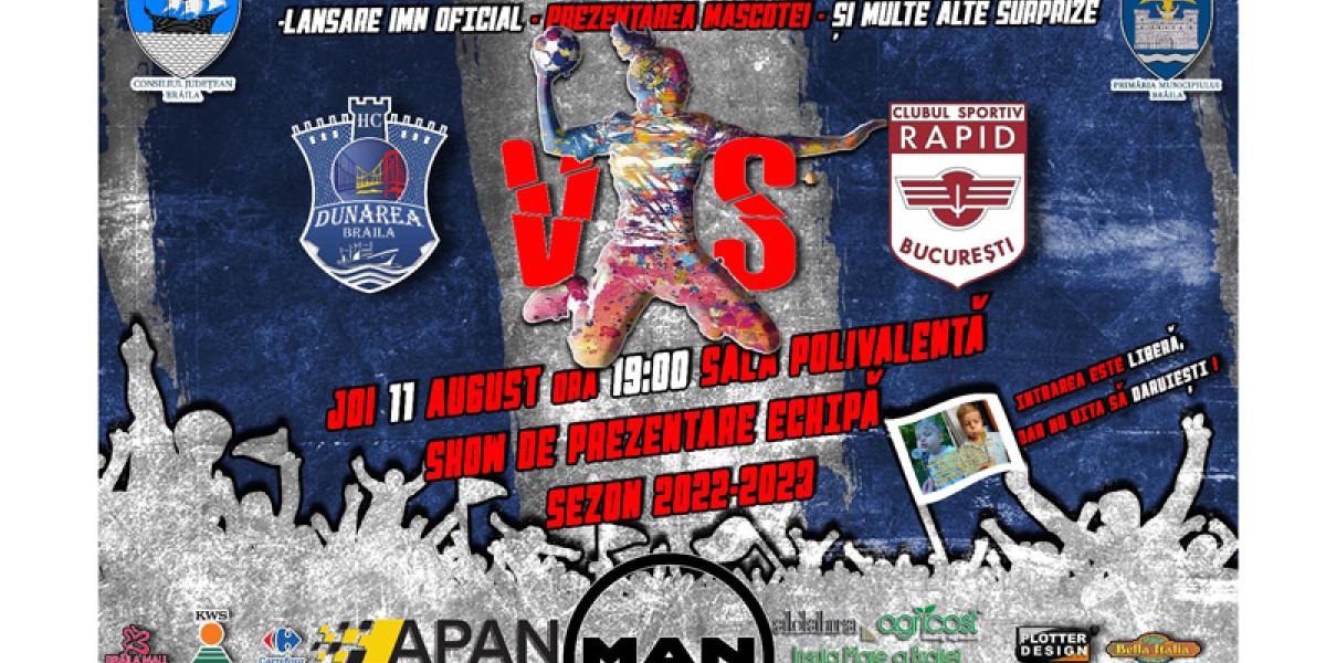Momentul mult așteptat a sosit, astfel că astăzi brăilenii vor asista la prezentarea oficială a lotului echipei HC Dunărea pentru sezonul 2022-2023. Iar în cadrul acestui eveniment, după momentul prezentării handbalistelor, fanii brăileni vor putea urmări un amical de gală, HC Dunărea - Rapid București.