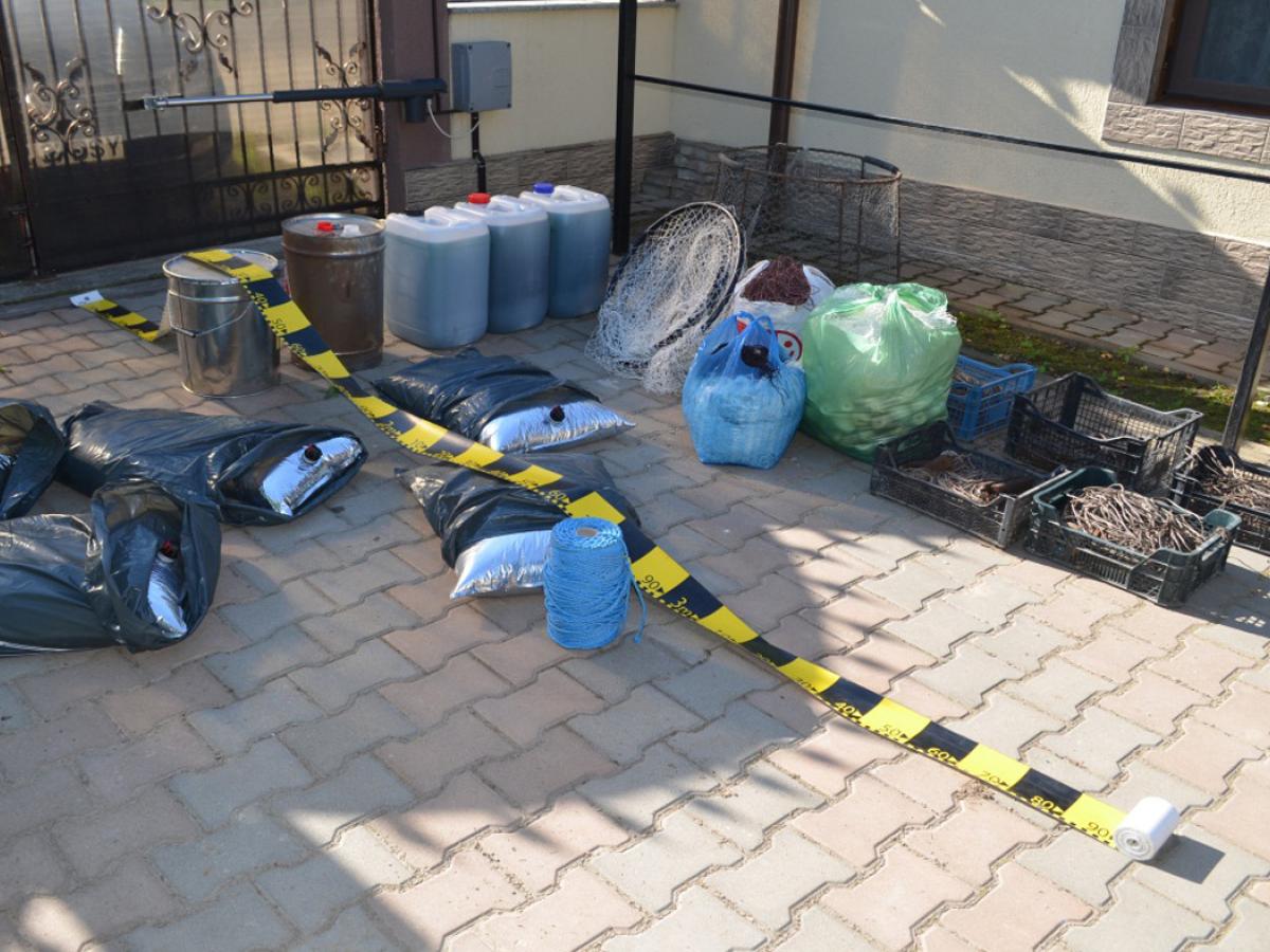În urma perchezițiilor efectuate în baza mandatelor emise de Judecătoria Brăila, au fost descoperite și ridicate în vederea continuării cercetărilor 200 litri de lichid de culoare verde având mirosul și consistența specifice motorinei, în valoare totală de 1.000 lei, aproximativ șase kilograme pește (sturion și caras) și unelte de pescuit (cinci unelte de pescuit comercial tip pripon, o unealtă de pescuit comercial tip vintir, o unealtă de pescuit tip odorob, 19 plase din ață destinate confecționării de unelte de pescuit comercial tip vintir, patru plase de pescuit tip napatcă, un fir din nailon tip pripon în lungime de 200 de metri, 215 metri de codule pescărești, 197 de plute pescărești și 52 de bucăți plumbi de utilitate pescărească), toate în valoare de 1.696 lei.