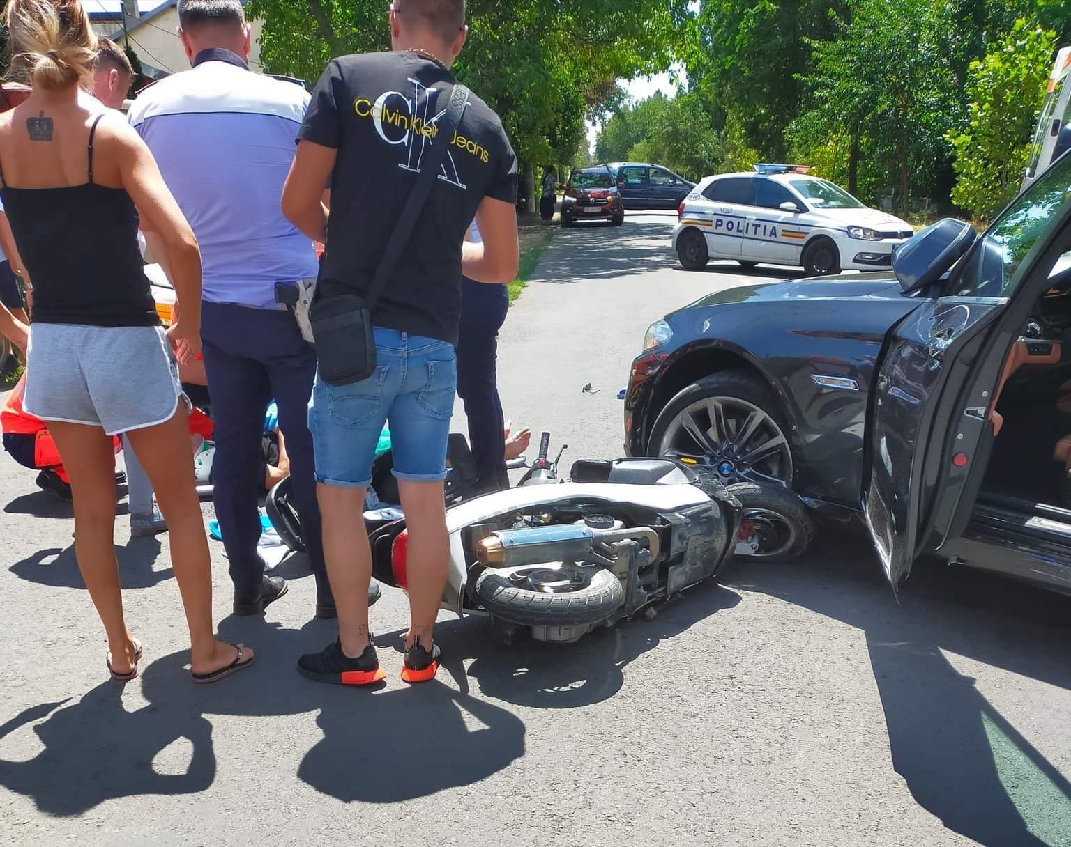 Pentru că nu a acordat prioritate la schimbarea direcției de mers, un șofer în vârstă de 29 de ani a accidentat un bărbat în vârstă de 49 de ani care se deplasa cu un moped. Mopedistul a ajuns la spital însă s-a ales și cu dosar penal, deoarece, pe lângă faptul că nu avea permis de conducere pentru nicio categorie de vehicule, se afla și sub influența băuturilor alcoolice.