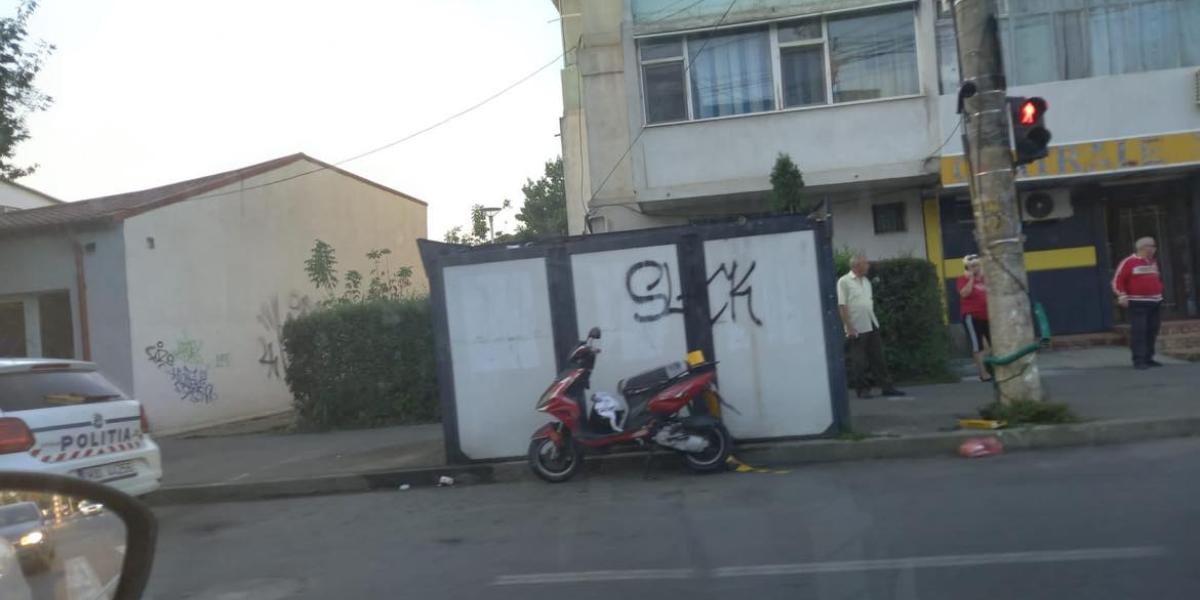 Mopedist grăbit, lovit de o maşină în intersecţie. Acesta a trecut pe culoarea roșie a semaforului, iar şoferul autoturismului nu l-a putut evita.