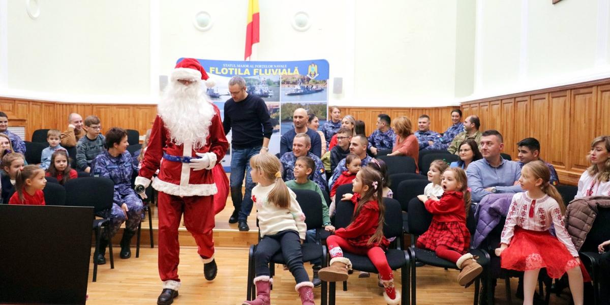 Comandamentul Flotilei Fluviale „Mihail Kogălniceanu” de la Brăila s-a transformat, preț de o zi, într-un adevărat tărâm de basm, animat de râsete de copii, pași grăbiți și clopoței ce au vestit apropierea Sfintelor Sărbători ale Nașterii Domnului.