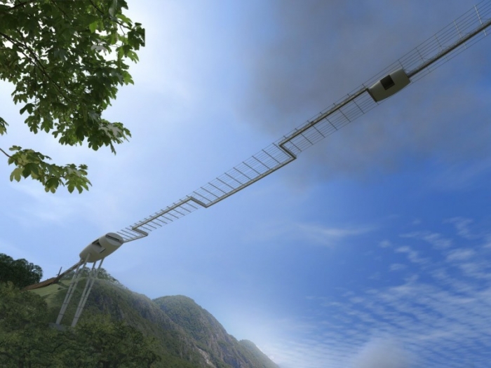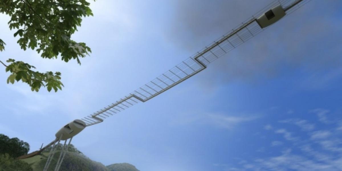 La prima vedere, podul - care se află la o înălțime de peste 200 de metri și are un design futurist - parcă plutește în aer. Construcția este susținută de opt cabluri metalice puternice, cu diametru de 52 de milimetri, care suportă câte 300 de tone fiecare. S-au utilizat în total 740 de tone de metal și 2.000 de metri cubi de beton.